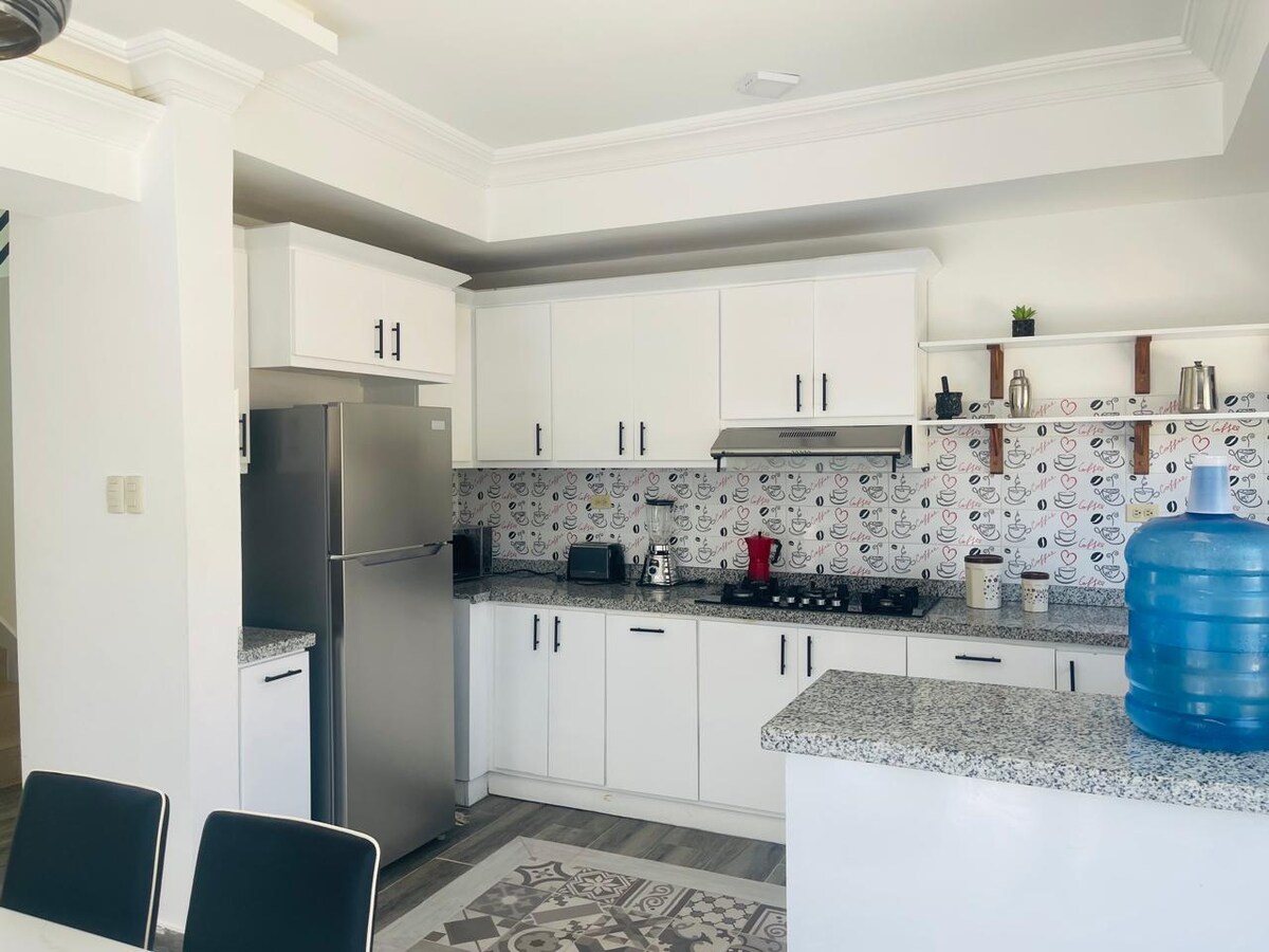 2 ննջասենյակով բնակարան 3 մահճակալով, 5 անձի համար նախատեսված տարածքով, բարկոնային տեռասով , առանձին զբոսայգու պատիոյով կլինի կենտրոնում, բայց աղմուկից հեռու ՝ հանգիստ և անվտանգ տեսահսկման տեսախցիկի տարածք ամբողջ տարածքում ……. Մեկ վայր: Կենտրոնում ՝ այցելելու Լոս Հեյթիս ազգային պարկ ,Callo Raised,Samana մեր բոլոր զբոսաշրջային վայրերը