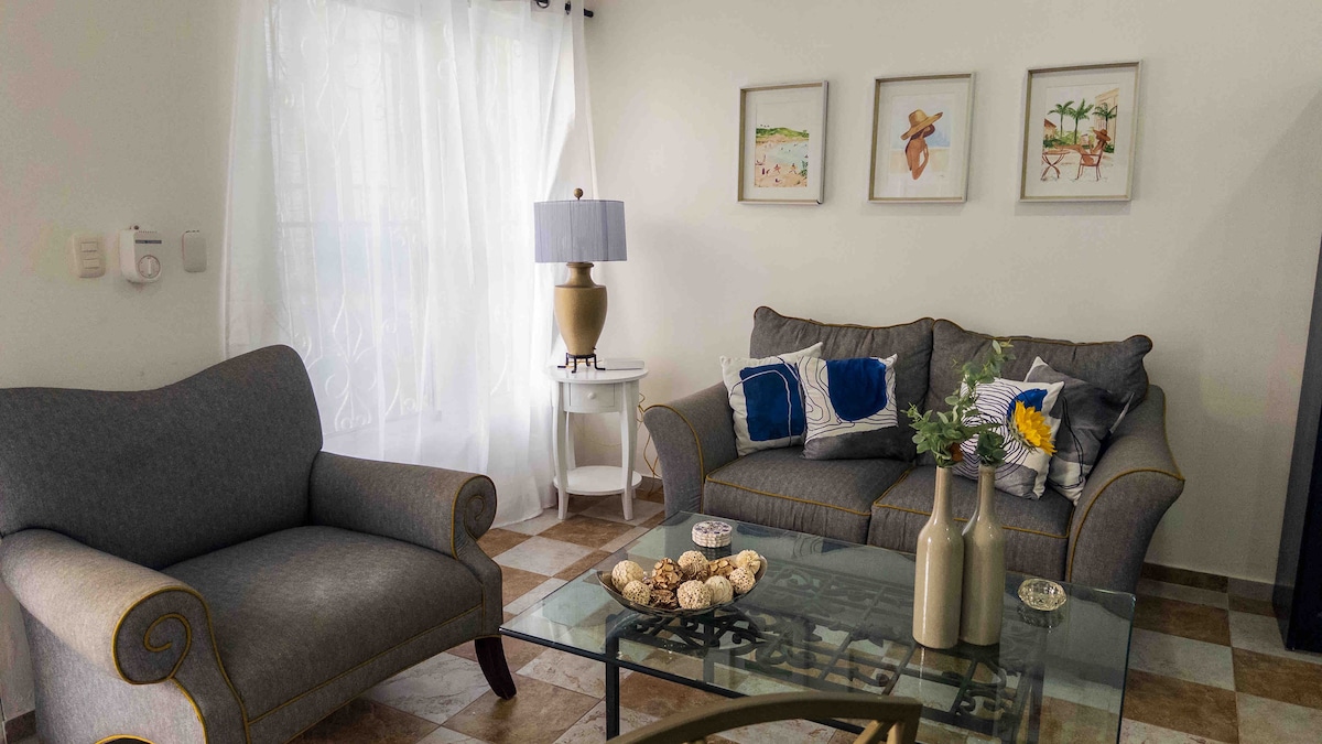 Գեղեցիկ և ժամանակակից բնակարան Պուերտո Պլատայի սրտում ։ Կատարյալ է մինչև 6 հյուրի համար ։ Նորաձև ձևավորված ՝ Մալեկոնին, լողափերին, սուպերմարկետներին և ռեստորաններին մոտ ։ Ննջասենյակներ ՝ ճոպանուղով և առաստաղի օդափոխիչներով ։ Արագ Wi - Fi, լվացքի մեքենա և չորանոց, կայանատեղին ներառված է ։ Օդանավակայանից ընդամենը 20 րոպե հեռավորության վրա ։