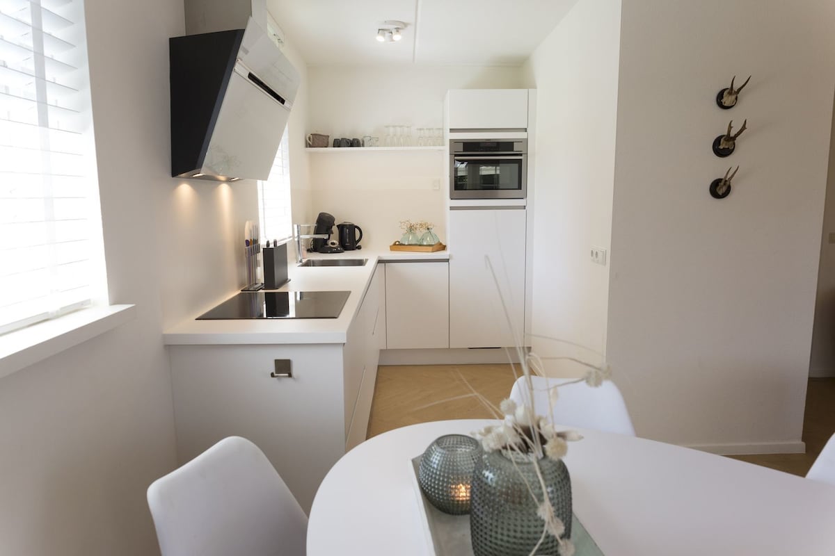 Enjoy peace and luxury in this stylish farmhouse near the Veluwe. Relax by the romantic fireplace or in the large private garden, surrounded by serene nature. The elegant interior with exclusive antiques and a modern kitchen provides ultimate comfort. Explore the Veluwe, go hiking or cycling, or visit Deventer and Zutphen. Discover Paleis Het Loo, Apenheul, and Park Hoge Veluwe. Unwind at Thermen Bussloo, just a short drive for wellness, then enjoy a cozy evening by the fire with a glass ofwine