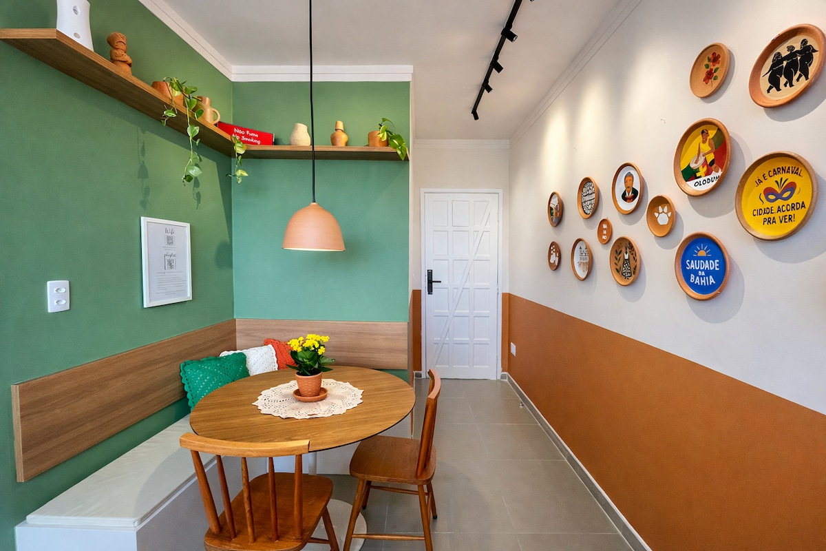 Բուտիկ - փորձառություն Բացահայտեք այս գունագեղ, գեղարվեստական հանգիստը, որը նայում է դեպի Տոդոս օս Սանտոս ծոցը ։ Վայելեք երրորդ հարկի բացառիկ մուտքը ՝ հարմարավետ ննջասենյակով, նորաոճ հյուրասենյակով և բացօթյա փոքրիկ խոհանոցիկով ։ Հանգստացեք տանիքի գագաթին ՝ լոգարանով և բացօթյա ցնցուղով ՝ վայելելով հիասքանչ մայրամուտներ ։ Դուք տան մնացած մասը կկիսեք իմ ընտանիքի ՝ 2 սիրալիր շան և 2 կատվի հետ ։ Մենք առաջարկում ենք սքանչելի նախաճաշ հիմնական խոհանոցում: