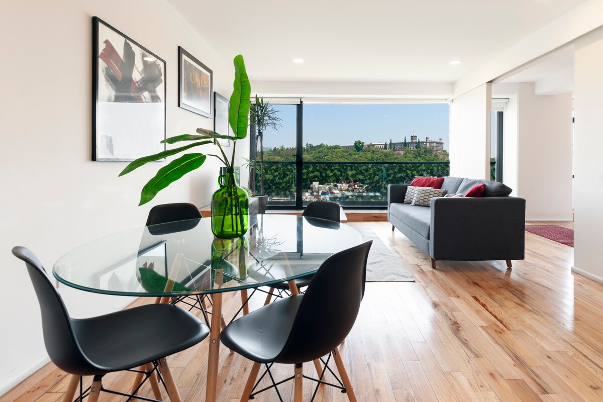 Բոլորովին նոր ՝ տպավորիչ տեսարանով ։ Սուպեր շքեղ բնակարան ։ Տեղակայված է քաղաքի ամենաթրենդային թաղամասում ։ Մետրոյի կայարանից երկու թաղամաս հեռավորության վրա ։ Շատ հարմար է բոլոր անհրաժեշտ պարագաներով հիանալի հանգստի համար ։ Հիանալի վայր է զույգերի համար: Դուք կունենաք Չապուլտեպեկի ամրոցը հենց պատուհանի դիմաց: Այն բոլորովին նոր է, հարմարավետ և ակնհայտորեն մաքուր տարածք է ։ Մոտ է բարերին, ռեստորաններին և Ռեֆորմային ՝ քաղաքի գլխավոր պողոտային ։