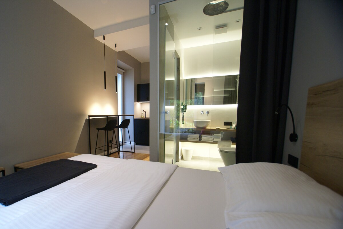 BRAND new elegant apartment in the CITY CENTER less then 10 min walking distance from the main square and train station. Situated in a peaceful backyard on the main street so you can enjoy quiet nights. There is one bedroom with queen size bed, living room with TV + NETFLIX and pull out sofa (queen size), bathroom with toilette and spacious walk in shower separated. All furniture and appliances are brand new. FREE tea&coffee,FREE towels.