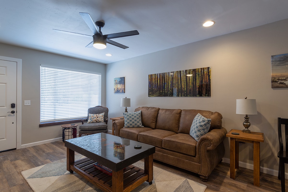 Welcome to our warm & cozy Studio Suite just minutes from Downtown Flagstaff! Featuring abundant amenities such as a kitchenette, king-size bed, full-size futon, TV, and games, it's perfect for a comfortable & luxurious stay. The location is only 1.5 miles from downtown, 20 min to Snowbowl, 90 min from the Grand Canyon & access to several of Flagstaff's best trails just steps away! You'll love coming back to this serene oasis at the end of the day. Come enjoy winter in the mountains & book now!