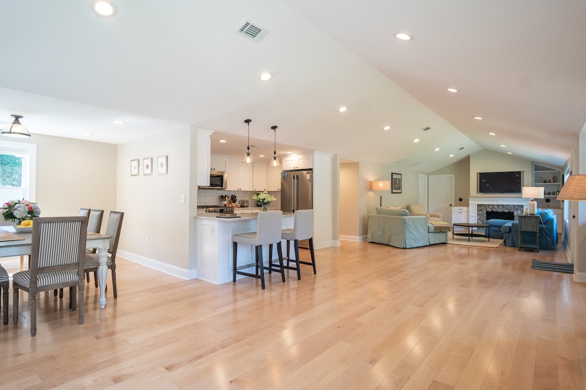 Just steps from downtown Mystic this modern Cape-style home is the perfect setting for your Mystic getaway. This cozy home has an open floor plan with modern kitchen, appliances, spacious rooms and central AC. Fenced-in backyard, large deck and a gas grill are perfect for relaxing after a day shopping or at the beach. There's a fireplace to cozy up to on chilly nights. Located near Mystic Aquarium and across the street from Delamar Mystic and Seaport. The home is pet-friendly inside and outside.