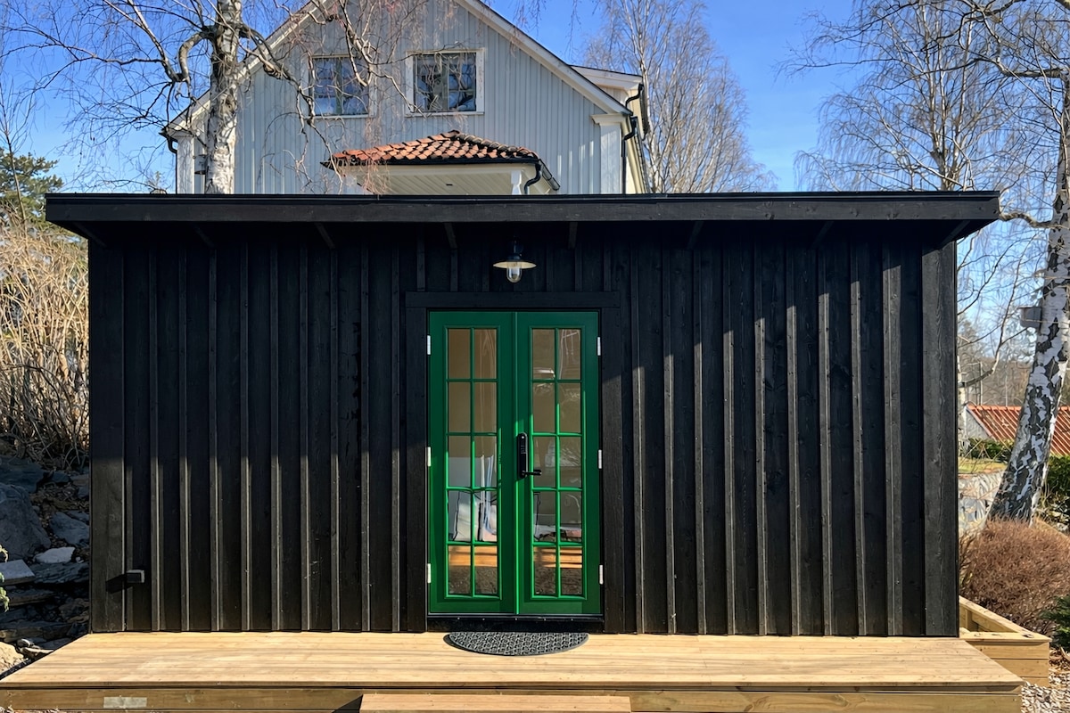 Բարի գալուստ 25 քմ մակերեսով մեր հարմարավետ և ժամանակակից հյուրատուն ՝ սեփական տանիքի կտուրով, պատիոյով և ջերմոցով ։ Հյուրատունն ունի մինի խոհանոց, մեկ ննջասենյակ և մեկ հյուրասենյակ ։ Կա մեկ երկտեղանի (120 սմ) և մեկ թախտ (140 սմ )։ Կատարյալ է փոքր ընտանիքի կամ երեք հյուրերի համար ։ Գտնվում է ծովից 5 րոպե հեռավորության վրա, որտեղից բացվում է տեսարան դեպի Նակա, ինչպես նաև մոտ է Կոտլասյոնին, որտեղ կարող եք լողալ ։ Դեպի Հյոգբերգա երկաթուղային կայարան կարճ ոտքով 30 րոպեից կարող եք հասնել քաղաք ։ Մեքենայով մոտ 20 րոպե մինչև Ստոկհոլմ քաղաք ։