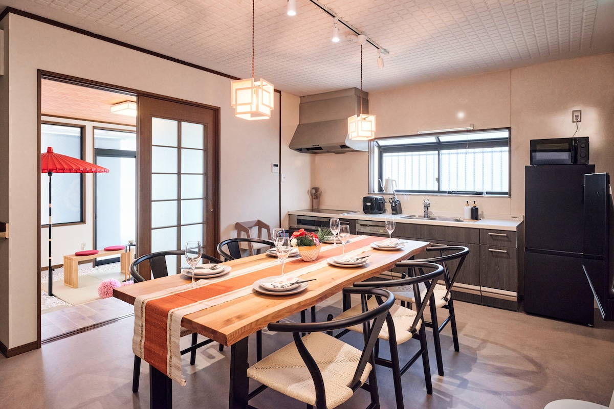 Սա նոր առանձնատուն է, որը կառուցվել է 2025 թվականի ապրիլին ։Կահույքն ու կենցաղային տեխնիկան նույնպես բոլորովին նոր են ։ Գերարագ Wi - Fi կա ։ Նաև կա լվացքի մեքենա և լոգասենյակի չորանոց։ Կարող եք դիտել Netflix - ը ։ Անվճար մանկական սայլակներ և մանկական նստատեղեր հասանելի են վարձակալության համար։Խնդրում ենք կիսվել ամրագրման պահին: Մեյտեցու Տոյոտա Հոնմաչի կայարանից ոտքով 2 րոպե հեռավորության վրա է ։Տեղում կա անվճար կայանատեղի 2 մեքենայի համար ։Այն կարող է տեղավորել մինչև 9 հոգի, այնպես որ կարող եք հանգստանալ ընտանիքների և ընկերների հետ:Բացի այդ, առաջին հարկում գտնվող մեկ ննջասենյակն ունի աշխատանքային տարածք, այնպես որ կարող եք օգտագործել համակարգիչ երկարաժամկետ այցերի համար ։ Նագոյա կայարան 10 րոպե գնացքով Մեքենայով 25 րոպե մինչև Նագոյա դղյակ 30 րոպե մեքենայով մինչև Չուբուի միջազգային օդանավակայան Մեքենայով 20 րոպե մինչև Լեգոլանդ Atsuta Jingu - ն մեքենայով 10 րոպե է