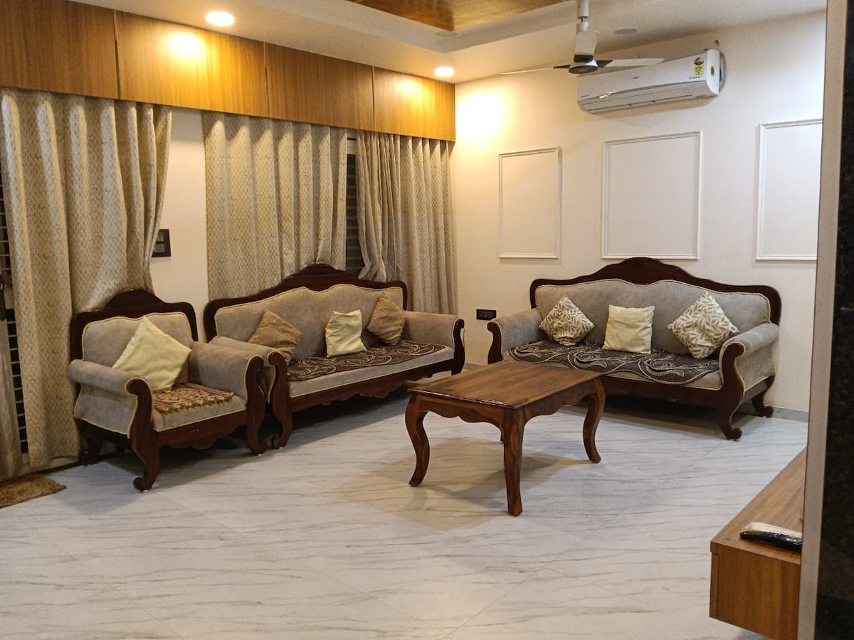 Շքեղ 3 սենյականոց վիլլա Նագպուրի խաղաղ թաղամասում՝ ժամանակակից ինտերիերով, ընդարձակ սենյակներով և հանգստացնող միջավայրով։ Կատարյալ է ընտանիքների և խմբերի համար։