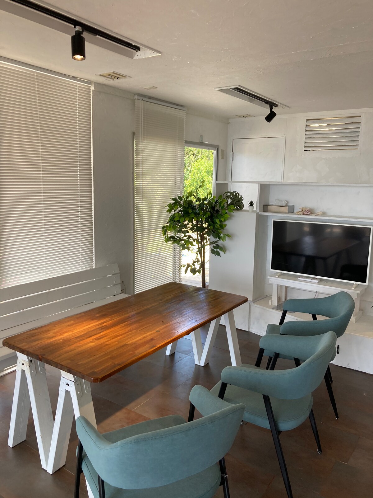 A fully renovated house in a peaceful residential area. The three bedrooms are divided by doors, allowing multiple family members to stay in privacy. The fully equipped kitchen is equipped with a gas BBQ grill. Located just a 30-sec walk to the popular cafe "PARAMITA", a 2-min walk to the supermarket, and a 3-min drive to the convenience store. The interior is decorated with a selection of furniture and accessories of various nationalities, a unique, stateless atmosphere.