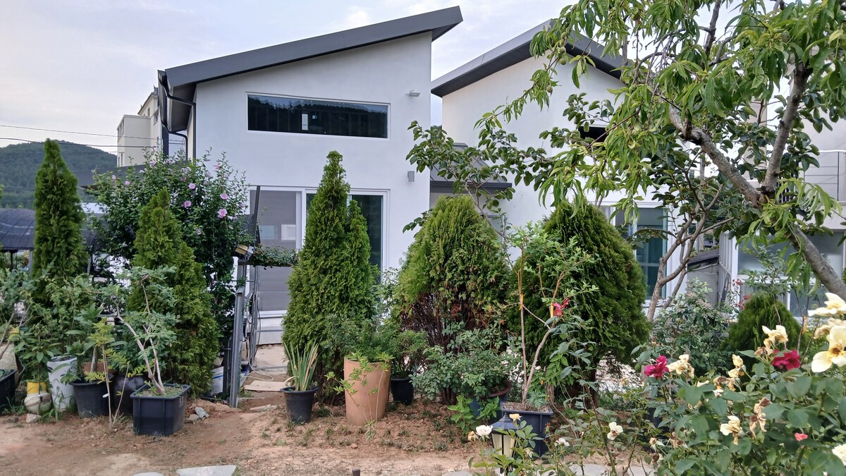 Այն հյուրասենյակ է ՝ շրջապատված 500 գեղեցիկ ծաղիկներով և ծառերով ։ Լավ է, որ մեծ ընտանիքները կամ ընկերները հավաքվեն, և դուք կարող եք վազել և խաղալ ձեր շան հետ մարգագետնային պարտեզում (պարտեզը համօգտագործվում է մյուս սենյակի հետ): Այն գեղեցիկ ծաղիկներով և գեղեցիկ ծառերով գեղեցիկ տուն է, և դուք կարող եք տեսնել սեզոնային հիբրիդները, որոնք պահում են հազվագյուտ բունյաեվոնը և պարտեզի շենքը: Նաև ՝ Դոնգբու լեռան վարդակ ։ Dongbu Mountain Lotte զբոսաշրջային համալիր, Jukseong Dream Cathedral:Ջիանգի ծովը գտնվում է 5 րոպե հեռավորության վրա ։ Ամբողջ ընտանիքով հանգստացեք այս հարմարավետ և բուժիչ գեղեցիկ տանը ։ ♧Խորովածի տարածք ՝ 30 000 կՎտ վճարովի վարձույթ (բնական անտառ, մեկանգամյա օգտագործման վառելափայտ, կիմչի և թթու բողկ, 4 հոգի/30 000 կՎտ) և անձնական սարքավորումներ ։ Շունը թույլատրվում է ։ Տեղավորում է մինչև 6 հոգի