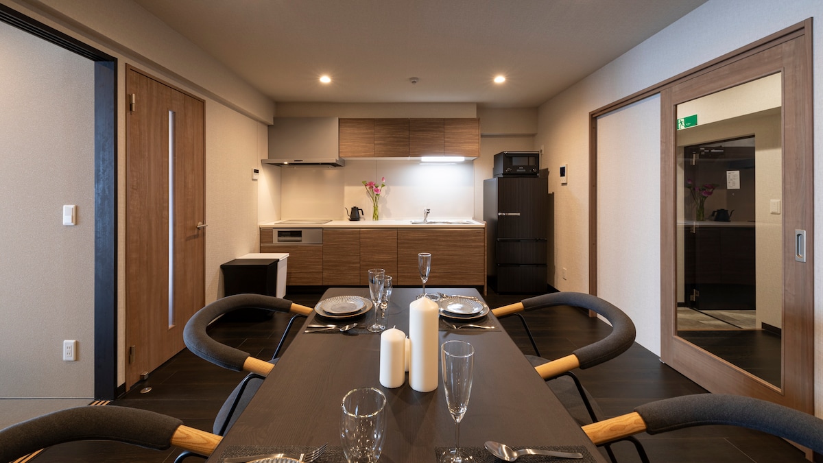 Namba, Dotonbori High - End Elevator Apartment "2 Toilet" 1 min walk to Subway & Kuromon Market 3 min & Shinsaibashi 5 min,