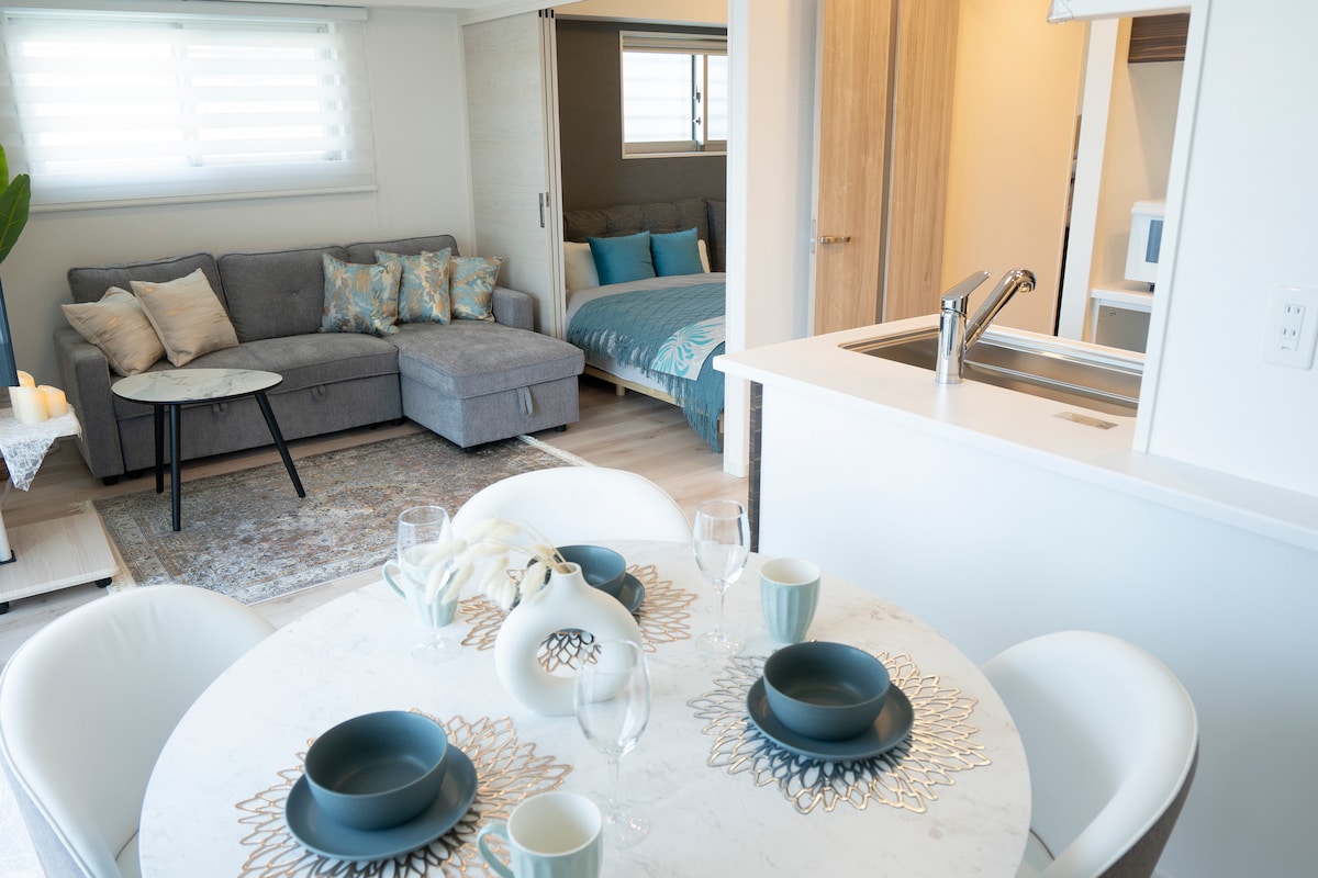 ✴︎ Attention✴︎ A demolition work started in the neighborhood as of late Feb 2026 Noise will be occurred. === This 1LDK apartment is located one block behind Route 58. Ideal for family or small group. 400m from Kencho-mae (Prefectural office) station (6 stations from airport). Basically 2 single futon sets(max 3sets are available). If you wish to share your bedding with your child, she/he is free of charge (if you have 2 such children, please count them as 1 adult and order 1 more bedding).