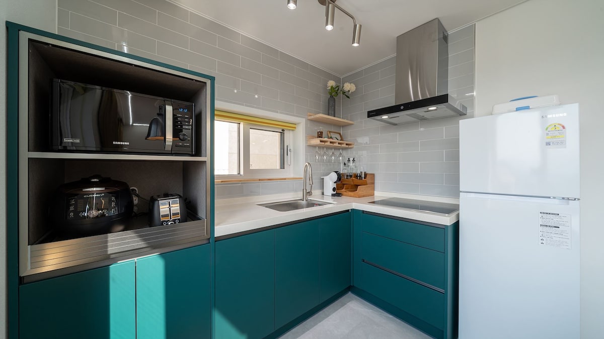 Դա մասնավոր շենք է, որը գտնվում է Գյոմբյոնսան բլրի վրա՝ Kim Yu-jeong Munhak գյուղի հետևում, որտեղ մեկ խումբ կարող է ամբողջությամբ վայելել պարտեզը և կացարանը մեկ օրվա ընթացքում։ Մենք տրամադրում ենք 100% բամբակյա սպիտակեղեն և արևի լույսի հոտով լցված, եռացված սրբիչներ՝ ամեն անգամ, երբ լվացք եք անում։ Այն լուսավոր տարածք է, որտեղ արևի լույսը ներթափանցում է մեծ պատուհանով։ Սա ստուդիայի տեսակի բնակարան է՝ երկու առանձին մահճակալներով, որոնք տեղադրված են կողք կողքի, այնպես որ հիմնականում նախատեսված է 2 մեծահասակի համար, և կարող են տրամադրվել լրացուցիչ մահճակալներ մինչև 4 անձի համար, և կարող են մուտք գործել մինչև 4 անձ, այդ թվում՝ մանուկներ։ Մինչև 2 տարի (մինչև 24 ամիս) անվճար է, և լրացուցիչ անկողնային պարագաներ չեն տրամադրվում, եթե անվճար է։ Կարող եք տեսնել Սամաքսան լեռը, իսկ եթե եղանակը լավ է, կարող եք տեսնել գեղեցիկ մայրամուտը՝ լի կարմիր լույսով։ Մենք նախաճաշ ենք տրամադրում վճարովի (5000 վոն/անձ, 3000 վոն՝ տարրական դպրոցի աշակերտների համար/անձ, բրանչ՝ հաջորդական գիշերների համար և այլն)։ Եթե ցանկանում եք, խնդրում ենք պատվիրել նախապես։ Մենք խորովածի ծառայություն չենք տրամադրում։ Մեր կացարանում խոհանոց չկա, այնպես որ չեք կարող կերակուրներ պատրաստել։ Կարող եք օգտվել միկրոալիքային վառարանից և սրճեփից։