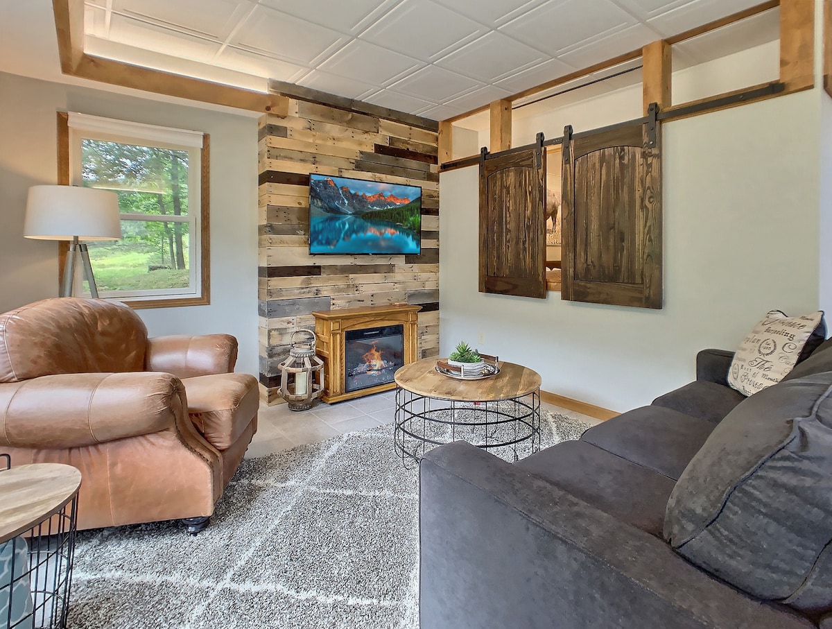 Renovated modern lower walk out basement apartment just 1.7 miles from the quaint Village of Ellicottville, NY sitting on 2 acres. Beautiful scenery and a fun town to shop, golf, hike or relax by fire pit! Apt. includes 1 bedroom (king bed), Living room w/ sofa (1 queen pull out), 1 full bath, large full kitchen, washer & dryer and Weber gas grill. Beautiful views!! *PETS considered please inquire.. *Please heart our listing to save and reference later.