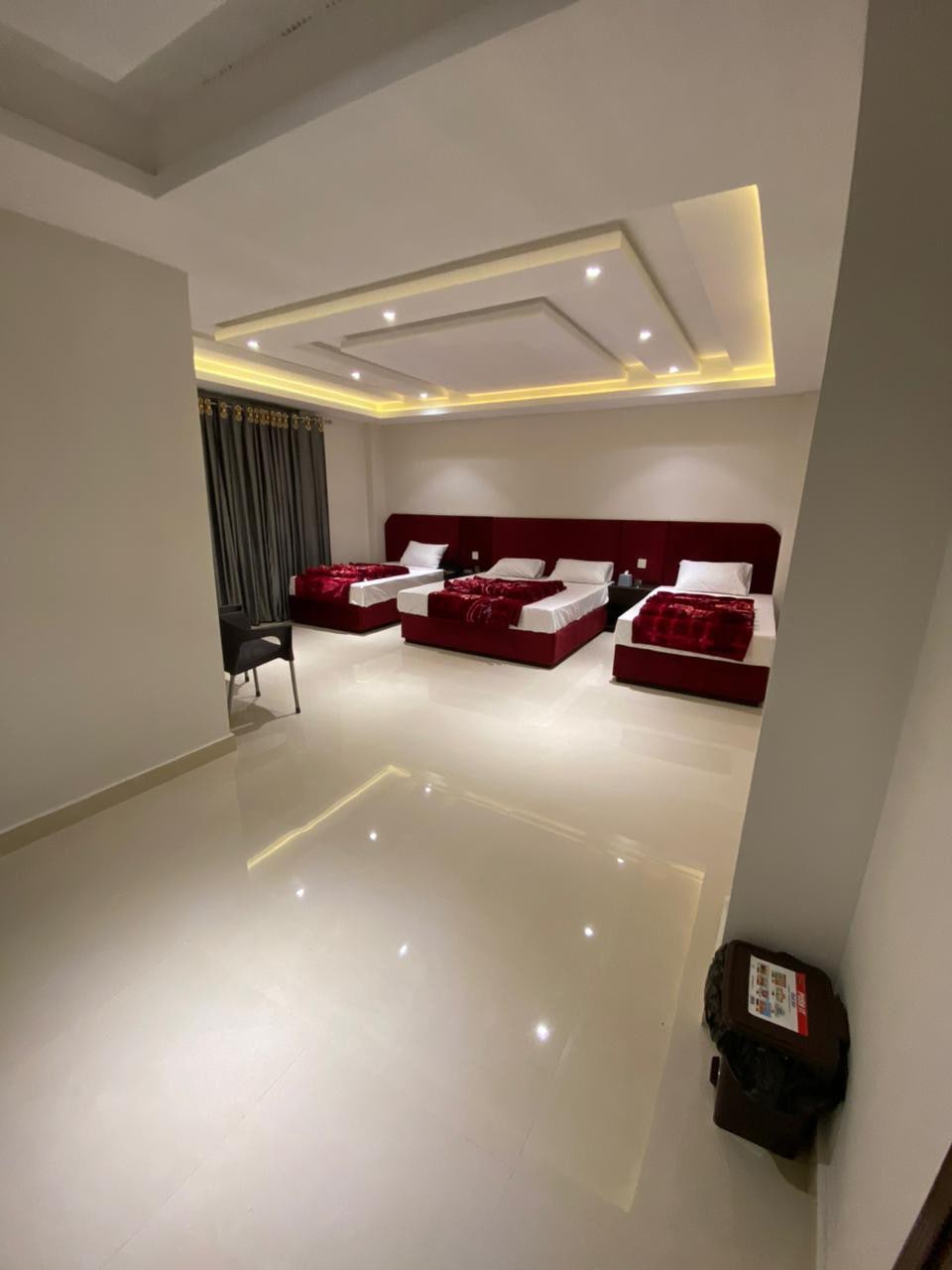 Premium Two Bed Room Apartment - Executive Standard Specifications: Bedrooms: Large King Size bed Twin singles Beds Living Area: 7-seater sofa, 55" Smart TV Central coffee table, separate entrance Kitchen/Dining: Fully equipped, 6 seat dining set Features: Wood-finish interiors, premium fittings High-speed prepaid internet, modern lighting Ideal for: Executive stays/family living (6 adults)