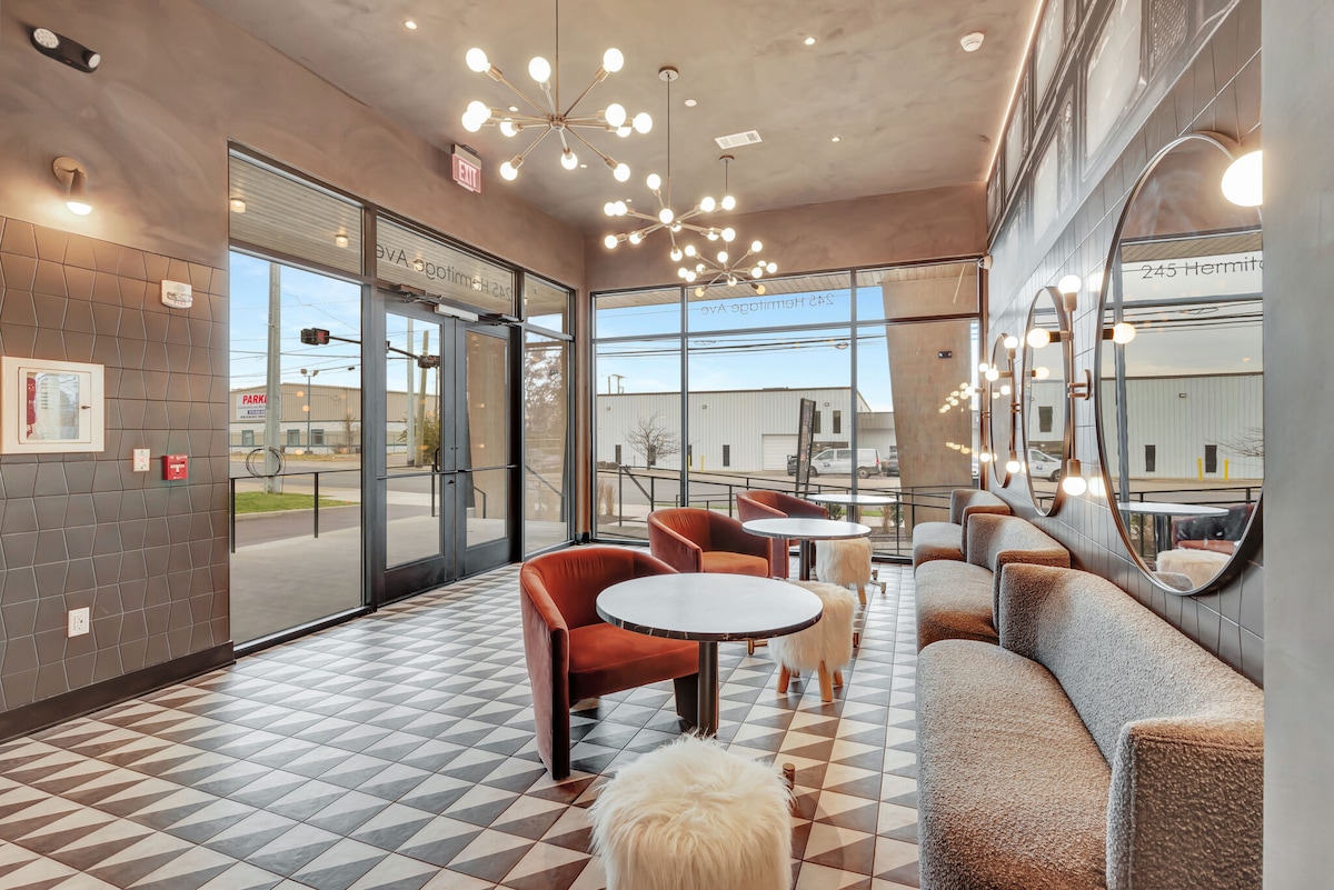 Մնացեք The Gilmore - ում ՝ Նեշվիլի ամենաբարձր վարկանիշ ունեցող հյուրանոցում, որտեղ եվրոպական ոճը համապատասխանում է հարավային հմայքին 12 հարավի սրտում: Բացվելով 2025 թվականի մայիսին ՝ մենք հպարտ ենք, որ TripAdvisor - ում զբաղեցրել ենք 230 հյուրանոցներից թիվ1 - ը ։ Տարածքը * Մեր Deluxe King Studios - ի գործառույթը ՝ * Պլյուշ մահճակալ, սև վարագույրներ և խալաթներ * Ամբողջական խոհանոց ՝ գազօջախով, սառնարանով, միկրոալիքային վառարանով և Nespresso - ով * Սմարթ հեռուստացույց, աշխատանքային տարածք և հիգիենայի շքեղ պարագաներ * Տանիքի տեռաս + առանձին պարտեզի բակ * Կոնսիերժի և սենյակի առողջ ապրելակերպի ծառայություններ