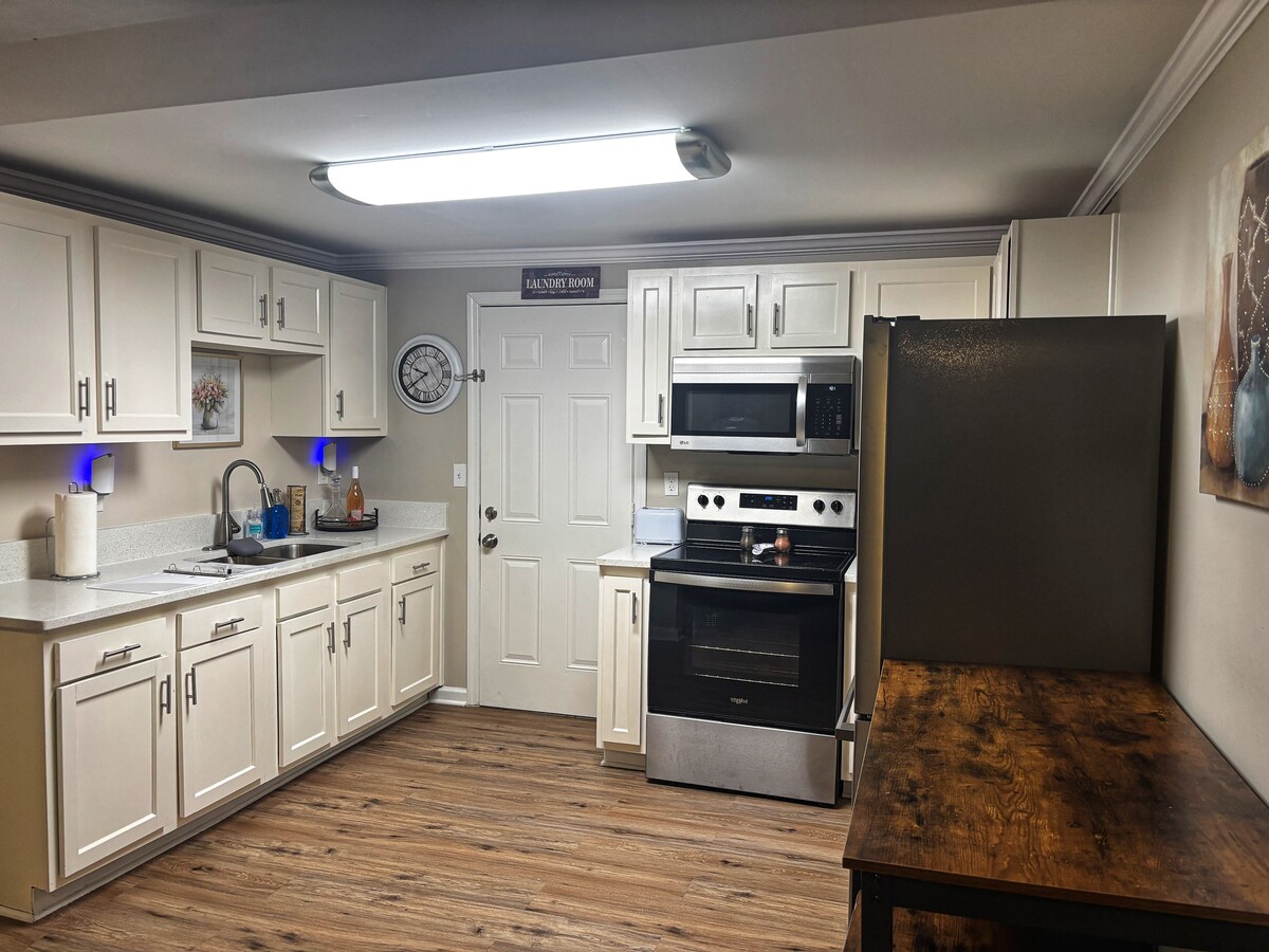 Have fun with the whole family at this stylish newly renovated home. Everything is modern & BRAND NEW! Enjoy a nice cozy evening in the backyard next to the fire. We have a king size bed in the master including a private FULL bathroom with a stand-up glass shower. The 2nd bedroom has a queen size bed next to the 2nd bedroom that has a garden tub. The living room couch pull outs & makes for queen bed. Each room has a smart tv with all your favorite shows.
