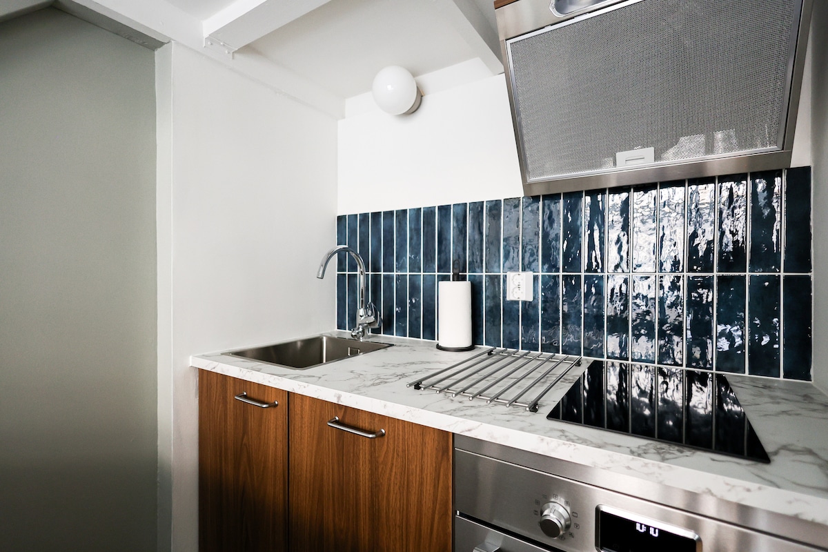 Ողջունեք մեր պայծառ տներին ՝ ձեր հարմարավետ թաքստոցը ՝ մի փոքր լրացուցիչ արմունկով սենյակով ։ Այս գեղեցիկ դիզայնով ստուդիան ունի երկտեղանի մահճակալ, ամբողջական խոհանոց, արագ Wi - Fi և բոլոր մտածված մանրուքները, որոնք կարող եք ակնկալել Բոբ Ուի այցից ։ Կատարյալ է միայնակ ճանապարհորդողների, զույգերի կամ բոլոր նրանց համար, ովքեր սիրում են լուրջ ոճով հարմարավետ տարածք ։ Բոլոր հյուրերը նույնպես կարող են օգտվել տանիքի սաունայից, համատեղ աշխատող լաունջից և ընդհանուր լվացքի տարածքից ։ Պարզապես հավաքեք ձեր ճամպրուկները. մնացածը կկարգավորենք ։