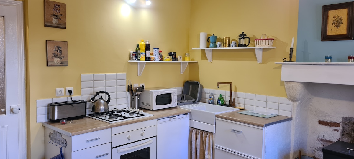 Այս հարմարավետ և անկախ տունը, որը գտնվում է գյուղական վայրերում, առաջարկում է հանգստի կամ պրոֆեսիոնալ հանգիստ բոլորի համար ։ Դասակարգվում է որպես 3 ականջ Gîtes de France և 3** կահավորված զբոսաշրջություն ։ Գտնվելով խաղաղ տարածքում ՝ այն իդեալական է ընտանիքի կամ ընկերների հետ հյուրասիրության կամ պարզապես մարտկոցները երկու հոգու համար վերալիցքավորելու համար... Նրա 1000 մ2 մակերեսով այգին ՝ ստվերված և ամբողջովին փակ, երիտասարդներին և ծերերին հրավիրում է պարապուրդի և խաղերի գեղեցիկ պահերի... Ձեր կենդանիների ընկերները սիրով սպասում են ձեզ ։