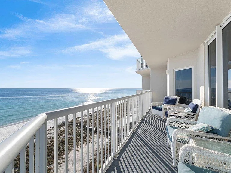 Welcome to Pensacola Perch, an 8th floor beachfront condo where you will enjoy expansive views of Pensacola Beach–– a perfect vantage point for dolphin sightings & the Blue Angels Air Show. This 2BR/2BA condo is in the sought after Emerald Isle gated resort where guests can enjoy resort amenities such as direct beach access, 2 swimming pools, a hot tub, sauna, & beachfront fitness center. There’s also complimentary use of 2 chairs & an umbrella from La Dolce Vita all through March to October.