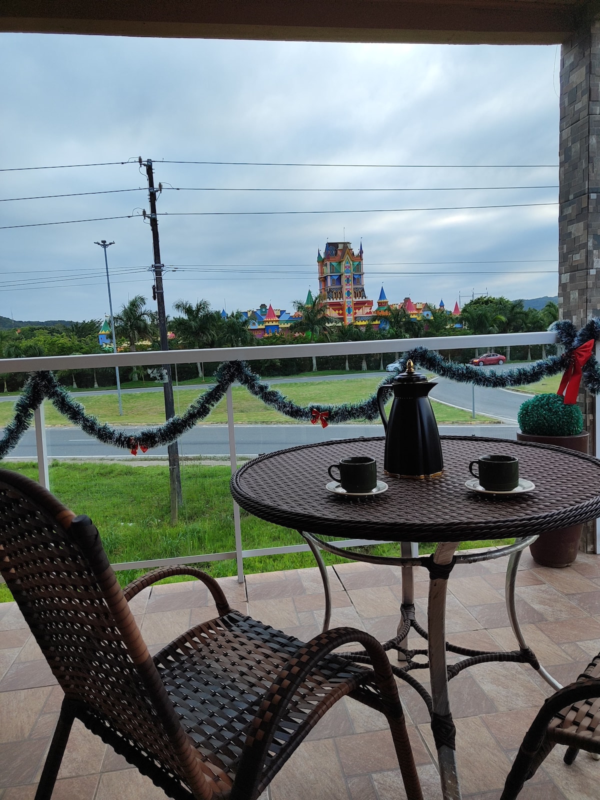 🌿 “Nossa pousada fica bem em frente ao Beto Carrero, e muita gente nos pergunta se os quartos têm varanda com vista para o parque. Eles não têm, mas oferecemos uma charmosa varanda de uso comum — um cantinho super aconchegante, perfeito para relaxar e curtir a linda vista do castelo do Beto Carrero!”