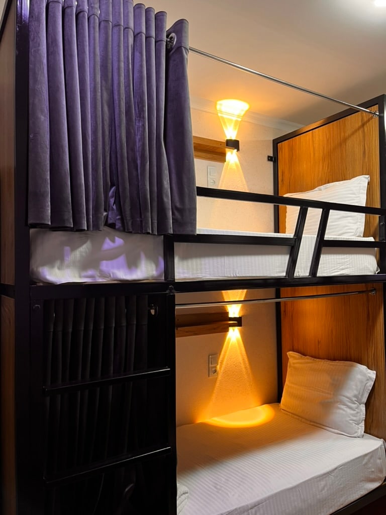 This spacious shared room is in an elegant boutique hotel in the city center, providing the perfect base for your stay. It offers high-speed internet, air conditioning, and a private bathroom, so you can relax comfortably while enjoying the hotel’s sophisticated ambiance. To enhance your experience, we also offer a delicious breakfast service for just $4 per person, making it easy for you to start your day off right.