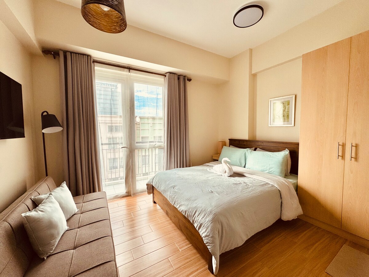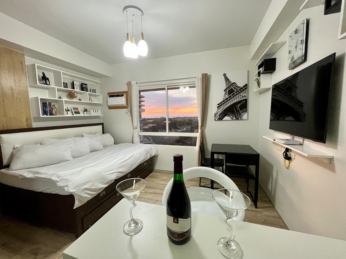 Վայելեք ձեր հանգիստը Բեկոլոդ Սիթիի սրտում գտնվող Mesavirre Garden Residences - ի այս հարմարավետ և նորաոճ ստուդիայում ։ Հարկաբաժինը հագեցած է հետևյալ պարագաներով, որոնք կարող եք լիովին օգտագործել ։ - 50 դյույմանոց խելացի հեռուստացույց Netflix - ի և HBO GO - ի հետ - Wi - Fi (անսահմանափակ) @ 300 Մբիթ/վ - օդորակիչ - սառնարան - բրնձի եփուկ - էլեկտրական թեյնիկ - էլեկտրական սալօջախ - ցնցուղի ջեռուցիչ - բիդե - խոհանոցային պարագաներ և սպասք - արդուկ - վարսահարդարիչ - հողաթափեր - ողջույնի հավաքածու - ազնվության խանութ - քարտային և սեղանի խաղեր