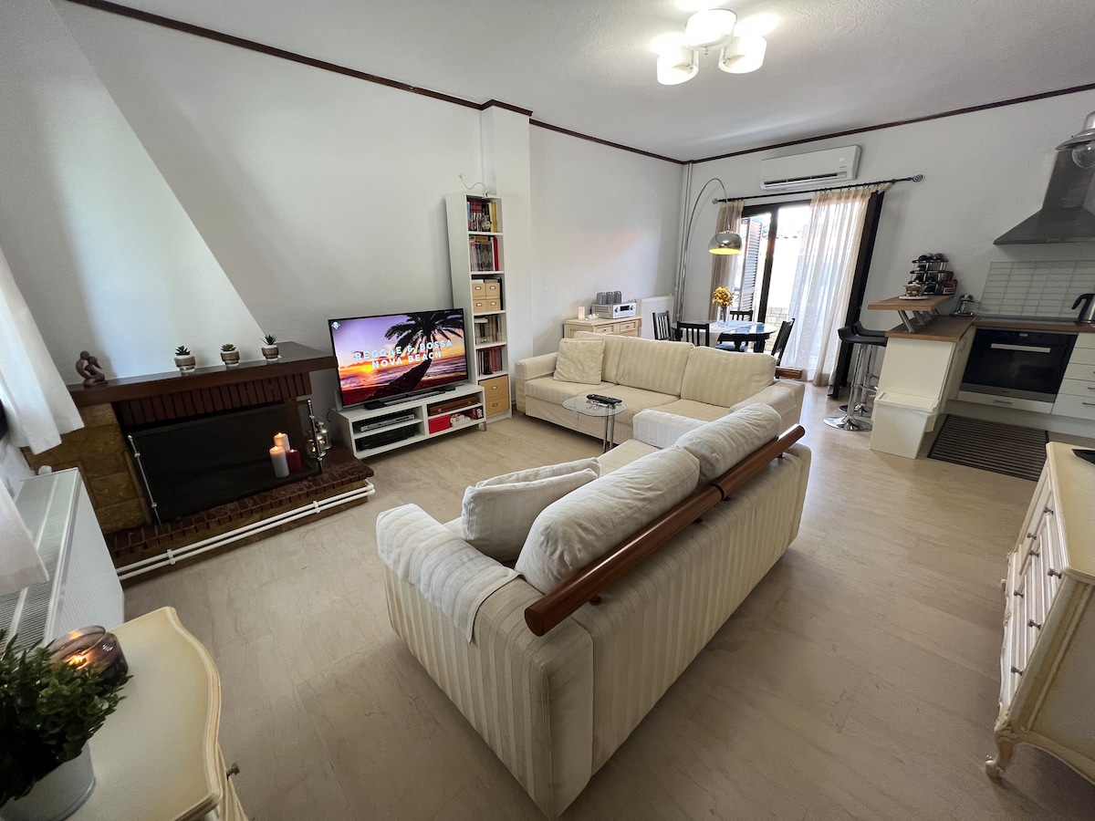 Ο χώρος μου είναι κατάλληλος για ζευγάρια, δραστηριότητες για ένα άτομο, επαγγελματίες ταξιδιώτες και οικογένειες (με παιδιά). Cosy apartment, bright and comfortable, located at the centre of Perea Thessaloniki, 50 m from the beach walk,10 Km from the airport. It is a safe city that bears all of the comforts needed for an enjoyable vacation.There are many cafe, beach bar and nice restaurants near the sea, where you can enjoy Greek cuzine admiring the view of the seaside.