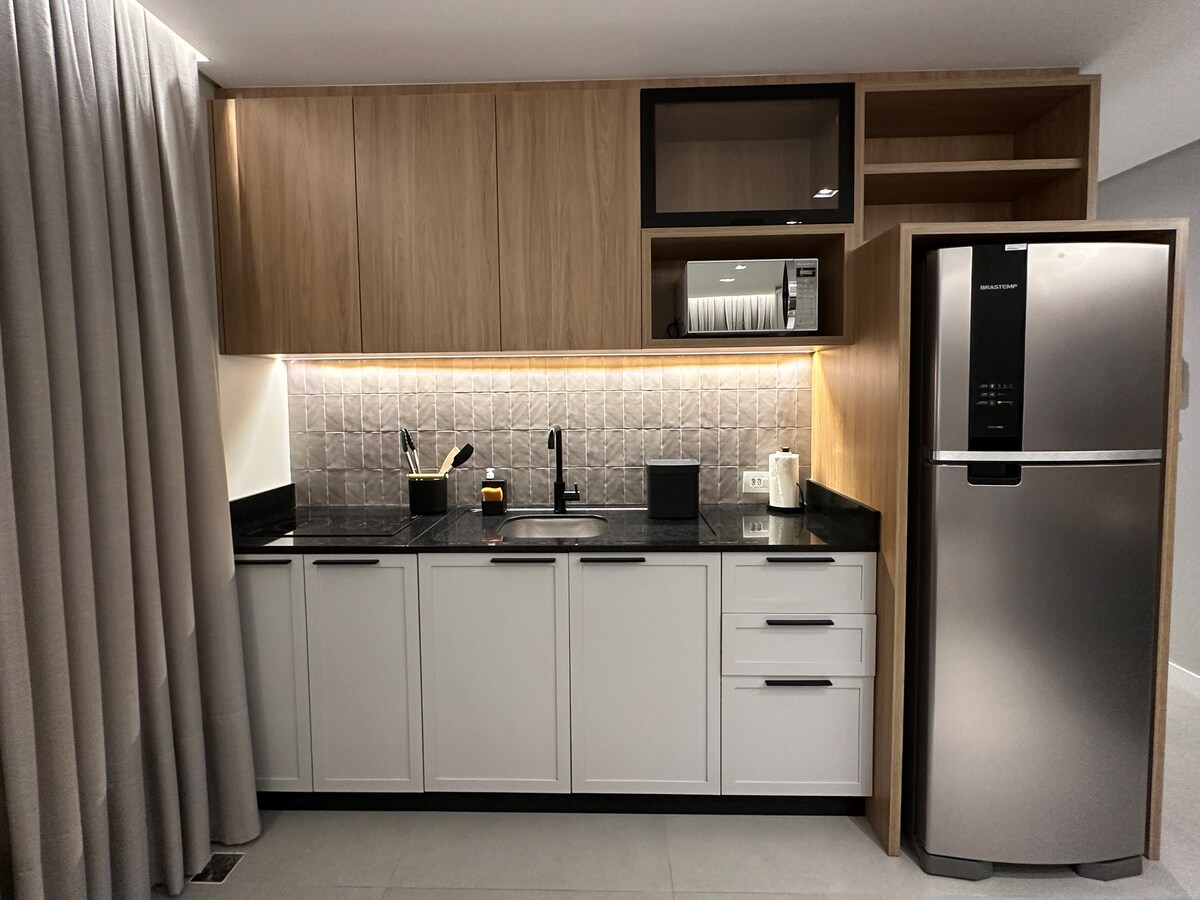 Բարդ ստուդիական բնակարան, որը գտնվում է Վիլա Գերմանիցա զբոսայգուց 800 մ հեռավորության վրա ՝ այնպիսի միջոցառումների անցկացման վայր, ինչպիսին է Օկտոբերֆեստը ։ Շրջապատված է ռեստորաններով, բարերով և սուպերմարկետներով ։ Ամեն ինչ ձեր հարմարավետության համար. Smart TV 50" Samsung, տրոհված օդորակիչ, գազի ցնցուղ, Wi - Fi մանրաթել 240mb, խոհանոց, որը լի է Brastemp սառնարանով, միկրոալիքային վառարանով, ջեռոցով, գազօջախով, սրճեփով, ջրի մաքրող միջոցով, լվացքի մեքենայով և չորանոցով, զգեստապահարանով և, իհարկե, հրապուրիչ երկտեղանի մահճակալ ՝ լավագույն ներքնակով: