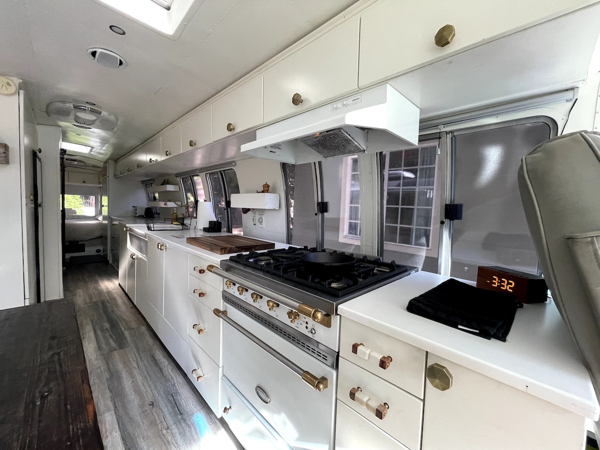 Our 1986 Airstream coach is equipped with a French-style kitchen, shower, Queen sized bed, Composting Toilet, A/C, Gas Furnace and Space Heater. The bedding and sheets are washed in organic detergent. Organic instant coffee, tea, hot water kettle provided. Nestled in the woods just 6 minutes to downtown Nevada City, CA.
