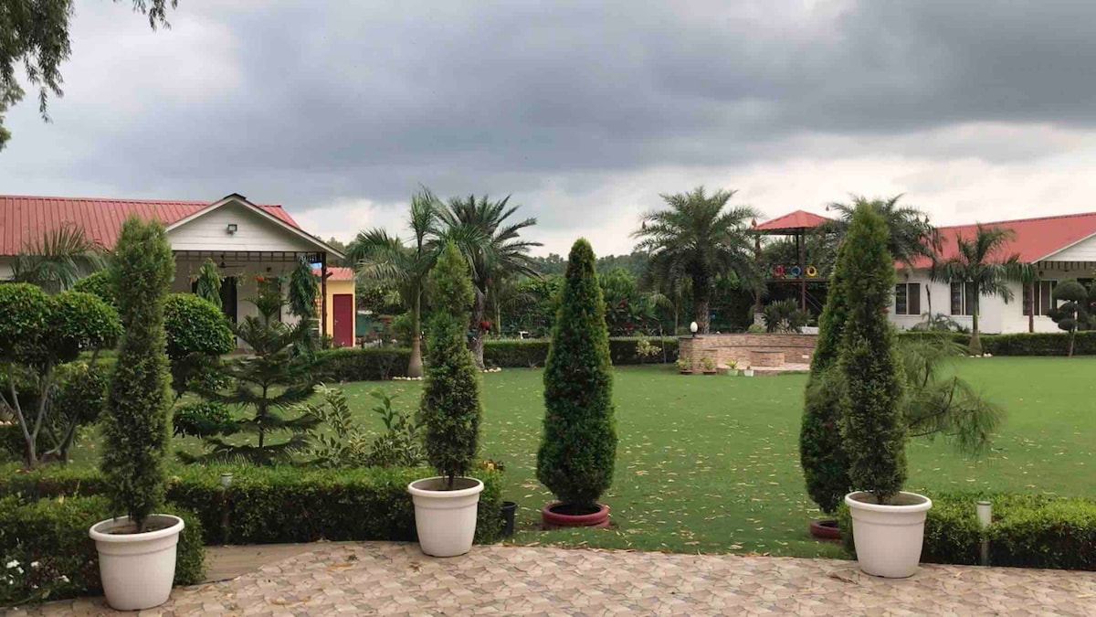 Բարի գալուստ Պաամ Ղար ։ Հանգչեք հմայիչ 2 ննջասենյակով ագարակում, որը գտնվում է Ֆարիդաբադի մոտակայքում գտնվող անխռով գյուղում ՝ Դելիից և Գուրգաոնից ընդամենը մի քանի րոպե հեռավորության վրա ։ Փորձեք ժամանակակից հարմարավետության և բնության չփչացող գրավչության ներդաշնակ միաձուլում ։ Այս իդիլիական հանգիստն առաջարկում է հանգիստ քաղաքային քաոսից ՝ հրավիրելով ձեզ ընդունել գյուղական վայրերում ապրելու խաղաղ ռիթմերը ։ Լավագույն Airbnb ագարակը, որը կարող եք զգալ Դելիում/NCR - ում ։