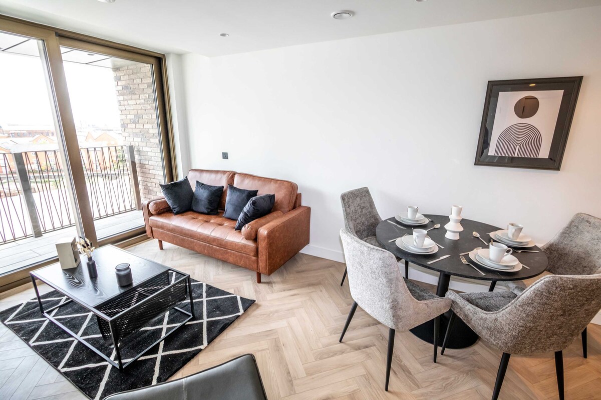 - 65sqm apartments. - Sleeps 3 - Double bed (180x200cm / 71x79in). An additional single bed is available on request. - Fully-equipped kitchen (dishware, cookware, dishwasher, fridge, microwave). - Coffee machine with pods. - Washer/dryer in-unit. - Dining table, sofa, arm chair and smart TV. - Ultra high-speed Wi-Fi. - Modern bathroom with shower, towels, and Bramley toiletries. Every apartment is unique, so your space may differ slightly from photos.