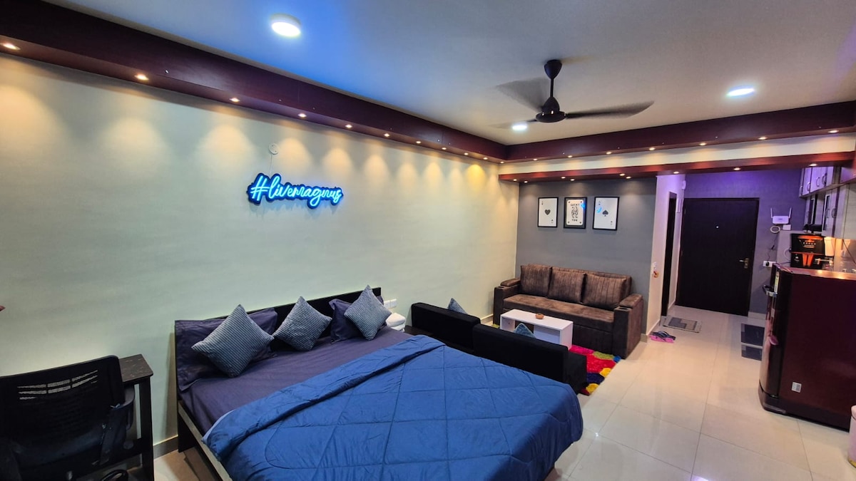 Լիովին կահավորված, շքեղ, խելացի ստուդիա-բնակարան՝ հարավային կողմում պատշգամբով, լողավազանով, մարզասրահով և այգով (հարմար է զույգերի համար)։ Մոտ է օդանավակայանին, CC2-ին։ Հյուրերը զվարճանում են ամբողջ ընտանիքի և ընկերների հետ։ Հարավում գտնվող պատշգամբը հիասքանչ է ։ Լիովին կահավորված խոհանոց ՝ ինդուկցիոն պարագաներով, սառնարանով ,միկրոալիքային վառարանով և ամենօրյա կարիքներով: Բարձր արագությամբ Wi - Fi ՝ ավելի քան 150 Մբիթ/վ: Մենք տրամադրում ենք նաև թեյի և սուրճի համեմունքներ: Խաղաղ ստուդիայի բնակարան ՝ ինքնուրույն ժամանումով .24 ×7 անվտանգություն...Խնդրում ենք այցելել n enjoy ❤️❤️