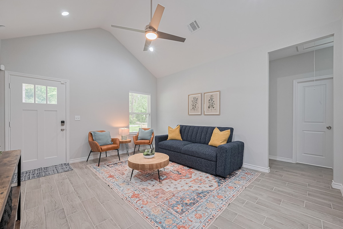 Հանգստացեք Սեմ Հյուսթոնի ազգային անտառի սրտում ՝ մեր երկու ննջասենյակով հարմարավետ քոթեջում: Այս քոթեջը կատարյալ վայր է, որտեղ կարելի է հանգստանալ մոտակայքում գտնվող բազմաթիվ հարմարություններով ։ Huntsville պետական Park 8.7mi, Sam Houston պետական համալսարան 15mi, Կենտրոն Huntsville Antique Shopping 16mi, 3 լճեր ձկնորսության ընթացքում րոպե հեռավորության վրա, եւ Կապույտ ծովածոց է միայն 16 մղոն հեռավորության վրա Քոթեջ. Մենք ունենք ամեն ինչ ընտանիքի համար հաճելի հանգստյան օրերի հանգստի համար: