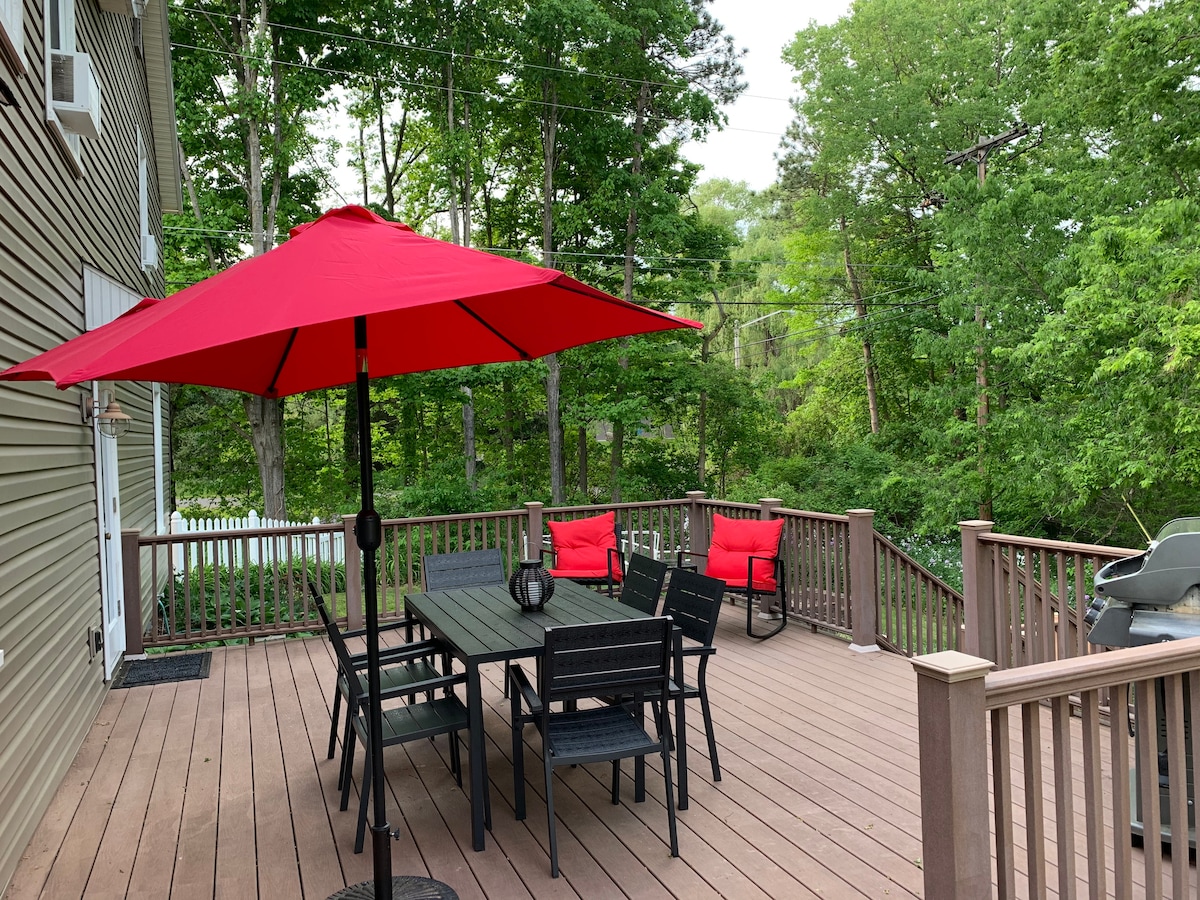 Գտնվում է 3 հեկտար տարածության վրա ՝ Մատների լճերի շրջանի սրտում ։ Սա բոլորովին նոր տուն է ՝ ջեռուցվող հատակով ։ Հայտնի Ռոբերտ Թրման պետական զբոսայգուց ընդամենը 5 րոպե հեռավորության վրա, 15 րոպե մինչև Թաուհանոկ զբոսայգի, 15 րոպե մինչև թանզիֆ Ֆոլս, 25 րոպե մինչև Ուոքենս Գլեն պետական զբոսայգի: Դուք ոչինչ բաց չեք թողնի ձեր պարտադիր անելիքների ցուցակում: Նաև կատարյալ է գտնվում 15 րոպե մինչև Իթաքա, 15 րոպե մինչև Տրումանսբուրգ, 20 րոպե Ուոքենս Գլենից: Սաունա և բացօթյա գրիլ ։