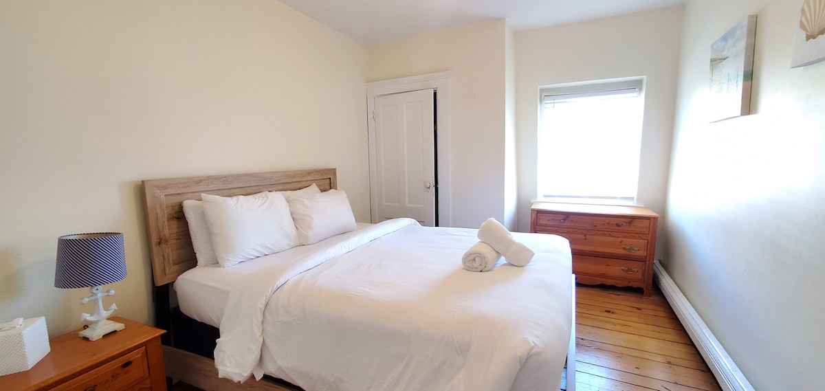 Charming New England studio apartment in Newport's Fifth Ward neighborhood. A very short walk to downtown and waterfront. Free private off street parking included for 2 cars. Self check-in and out. 1 Queen Bed. Walk up unit ( 1/2 flight of stairs) Air-conditioned, indoor gas fireplace, deck and patio with gas grill, high speed internet, Washer/Dryer in unit. Across the street from Kings Park, beach, playground and The Waterfront Walk. Complimentary coffee, cold drinks, Bottled Water and fruit.