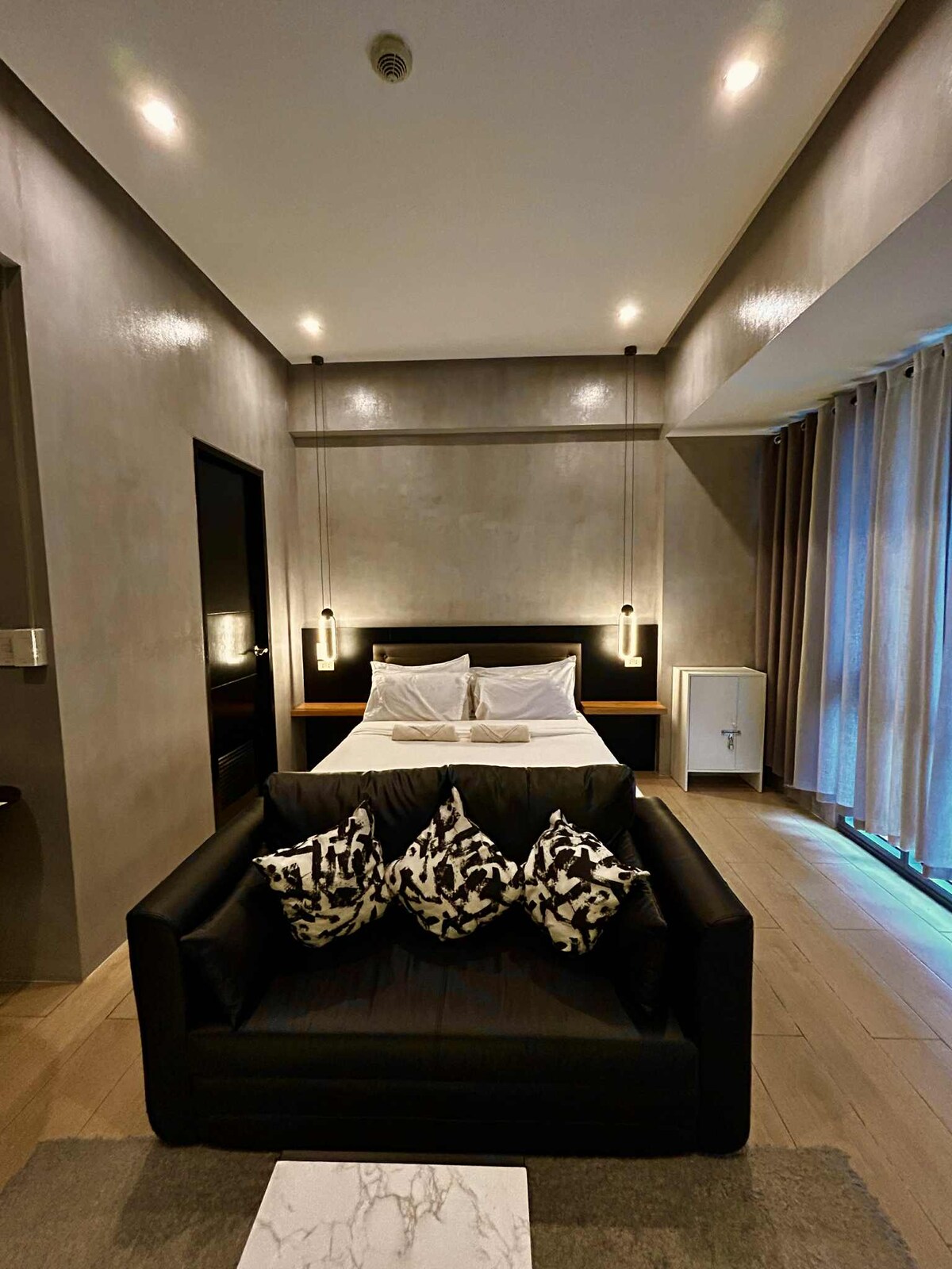 For business or holiday travelers looking for an alternative to hotel but still with a top-class hotel feel. The studio is located just across NAIA Terminal 3 and can be reached by a short walk from the airport, partly through an air-conditioned footbridge. Within short walking distance from the studio, you will find restaurants, shopping, service, casinos and bars with live music entertainment. As a guest, you'll have free access to a large outdoor pool, a 55'' Smart TV and Wi-Fi 100 Mbps.
