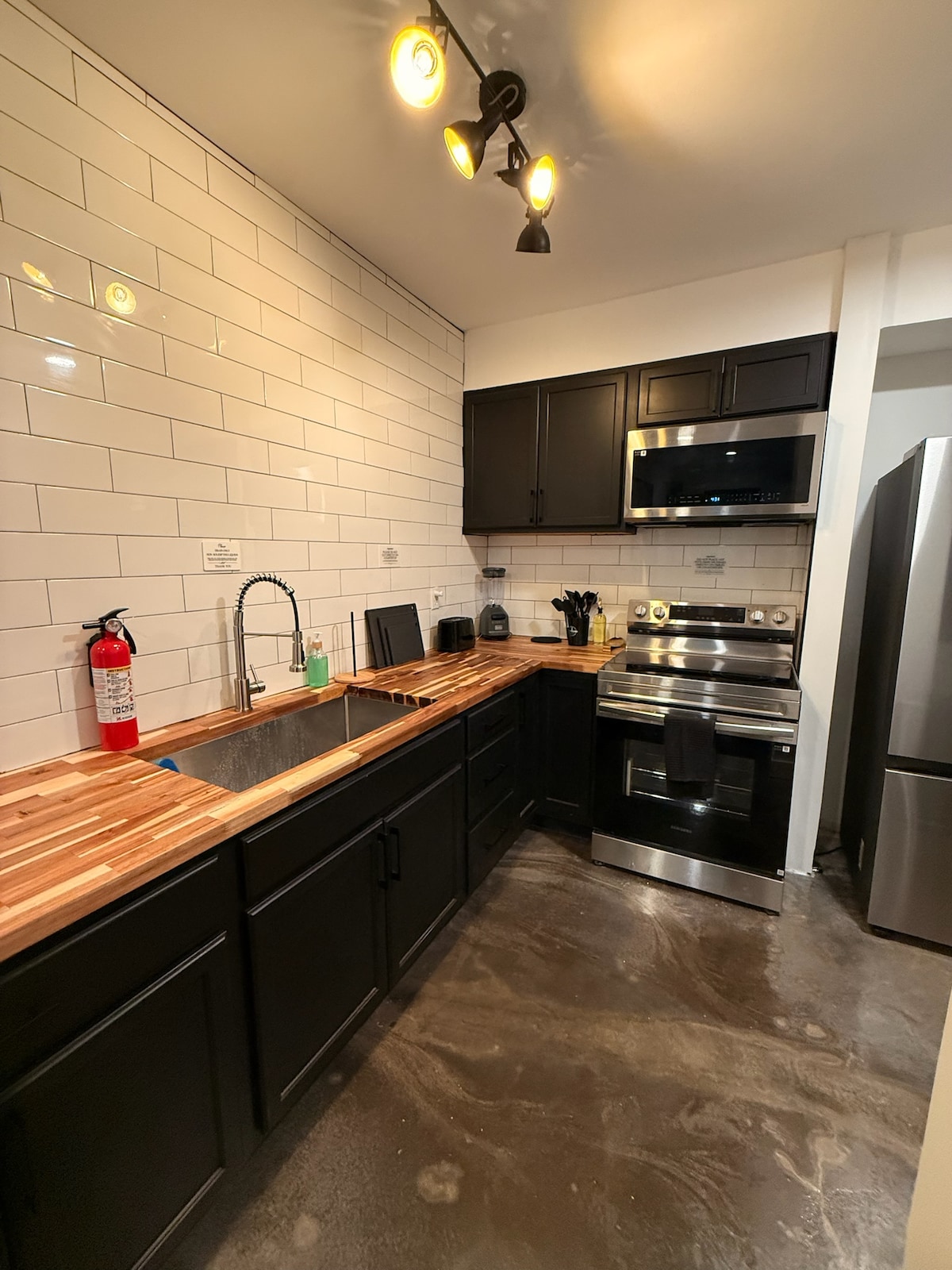 Welcome to Bamboo Suite A! 🌿 This boutique space was created to feel like your own peaceful escape. Take a stroll along the bamboo trail and stream that runs through the property. This suite has its own private patio, so you can sit back, relax, and enjoy the scenery and fresh air. Inside, you’ll find a full kitchen, open concept living and dining room with a rotating 65” TV and electric fireplace, coffee/tea bar, a cozy queen size memory foam bed, and elegant bathroom with walk-in shower!