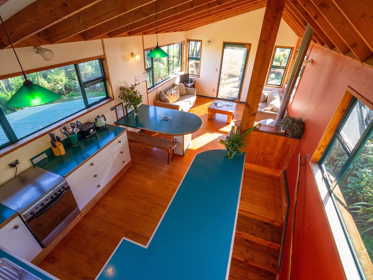 Այս երեք ննջարանով ժամանակակից բաչը Պորարի գետից սահելու և ցատկելու տեղ է: Այն ունի ընդարձակ տախտակամած ՝ բացօթյա կահույքով, այնպես որ կարող եք վայելել բլուրների, գետի և ծովի տպավորիչ 360 աստիճան տեսարանները ։ Bullock Creek Road - ից ընդամենը 200 մետր հեռավորության վրա և Թումանյանի ուղուց մեկ կիլոմետր հեռավորության վրա, դուք գտնվում եք Արևմտյան ափի բնության լավագույն զբոսանքներից մի քանիսի հեռավորության վրա: Խնդրում ենք տարածքում չծխել, քանի որ այն ոչնչացնում է Պապարոա ազգային պարկի մաքուր, բնական գեղեցկությունը ։