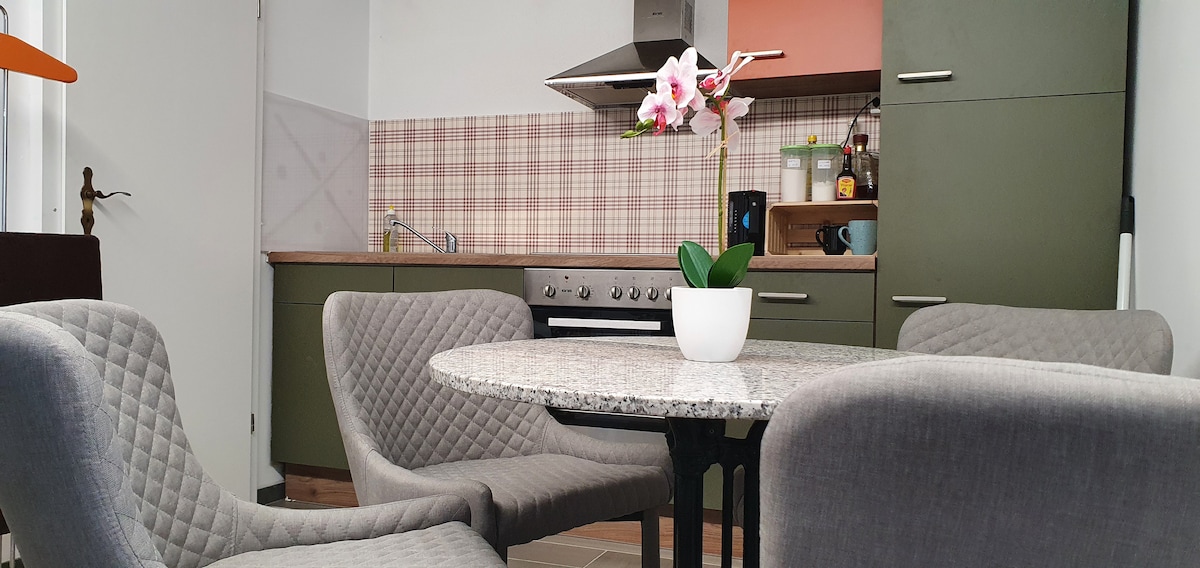 Zimmer mit großzügiger Terrasse. Küche: Komplett ausgestattete Küche mit Geschirrspüler, Kochfeld, Mikrowelle, Backofen und Kaffeemaschine. Getränke sind für dich kostenlos bereitgestellt. -Wohnbereich: Bettsofa. Gratis WLAN, großer Smart-TV -Badezimmer: Geräumiges WC mit Dusche und großem Spiegel. -Beleuchtung: Stimmungsvolle LED-Beleuchtung Das Zimmer bietet dir die perfekte Kombination aus Komfort und Entspannung im eigenen Stil. Ideal für Paare (+ Kind), Alleinreisende oder Geschäftsleute