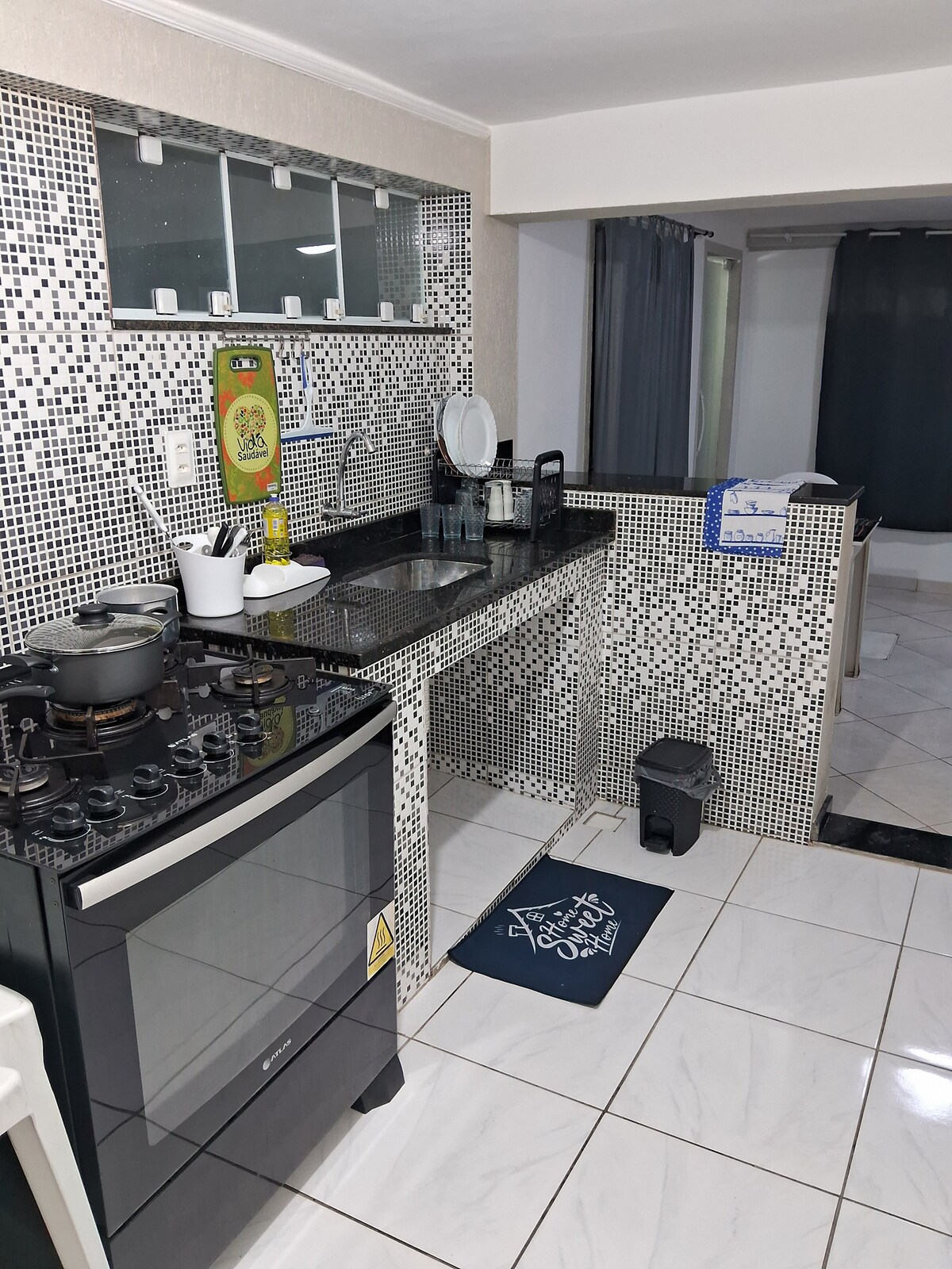 Շուրջօրյա անվտանգությամբ բնակարան կոնդոմինիումի ներսում, հագեցած կենցաղային տեխնիկայով և խոհանոցային պարագաներով, գազօջախով, սառնարանի լվացքի մեքենայով, միկրոալիքային վառարանով, օդորակիչով և ինտերնետով, անկողնային սպիտակեղենով, հանգիստ տարածքով և երկաթուղային կայարանին մոտ ՝ Պրայա դա Բարայի, Ռեկրեյոյի և Սերանա շրջանի և Կոստա Վերդեի շրջանի հարմարություններով ։