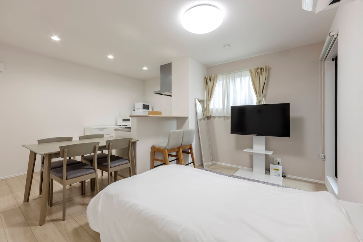 NAGOYA - HUB405 - ը 1LDK մասնավոր տարածք է Նագոյա կայարանից ոտքով քայլելու հեռավորության վրա և հարմար է բիզնեսի և տեսարժան վայրեր այցելելու համար: Wi - Fi - ը հասանելի է և հիանալի է նաև աշխատանքային տարածքի համար ։ Մենք ձեզ տրամադրում ենք հարմարավետ հանգիստ ՝ կահույքով, կենցաղային տեխնիկայով և խոհանոցային պարագաներով ։ Պարզ 1R, բայց յուրահատուկ ինտերիերով և պայծառ գունազարդմամբ ։ Հիանալի հիմք գործնական ուղևորությունների, տեսարժան վայրերի և երկարաժամկետ այցերի համար ։ Մանանեխի դեղին բազմոց Սրճարանի սեղանով և կողքի սեղանով - Wi - Fi - ը հասանելի է աշխատանքային արձակուրդների համար ։ Առանձին վաննաներ + սենյակում լվացքի մեքենա Տեղադրության առանձնահատկությունները Նագոյա կայարանից ոտքով 10 րոպե հեռավորության վրա Տայկոդորի կայարանից ոտքով 4 րոպե հեռավորության վրա Հարմարավետ խանութներից և ռեստորաններից ոտքով 1 րոպեի ընթացքում Գտնվում է հանգիստ բնակելի թաղամասում Հիանալի է տեսարժան վայրեր այցելելու և գործնական ուղևորությունների համար