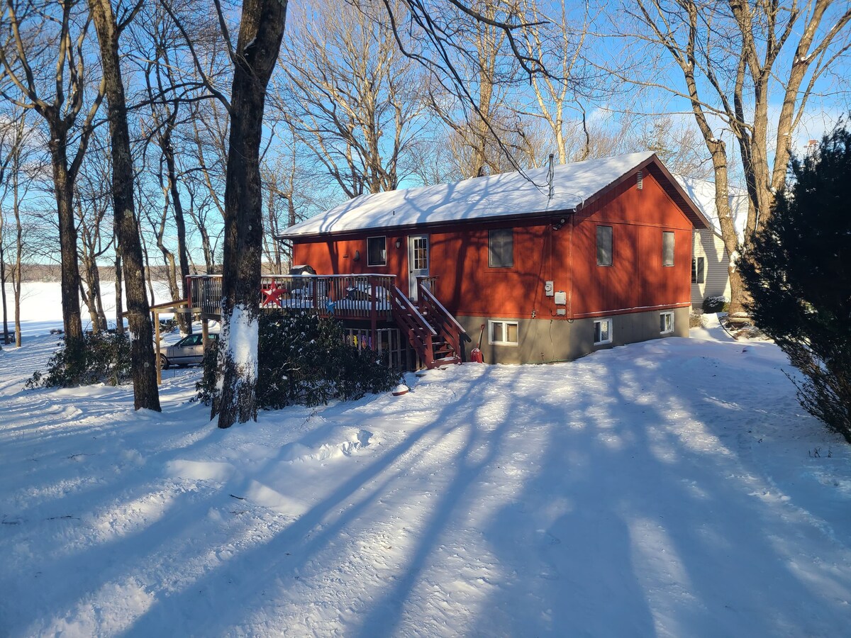 The woodstove hums, the snow falls softly outside, and time feels like it stretches a little wider. It’s not fancy and that's exactly the point. It just feels good to be here. Cozy lakefront cabin with wood stove, peaceful winter views, & a laid back feel. Not fancy, but full of character. Sleeps up to 6 to 8 comfortably, private lake community, and perfect for a 3–4 night escape. Last-minute availability available now. We currently have availability for a 2–3 night. Pet Friendly too!