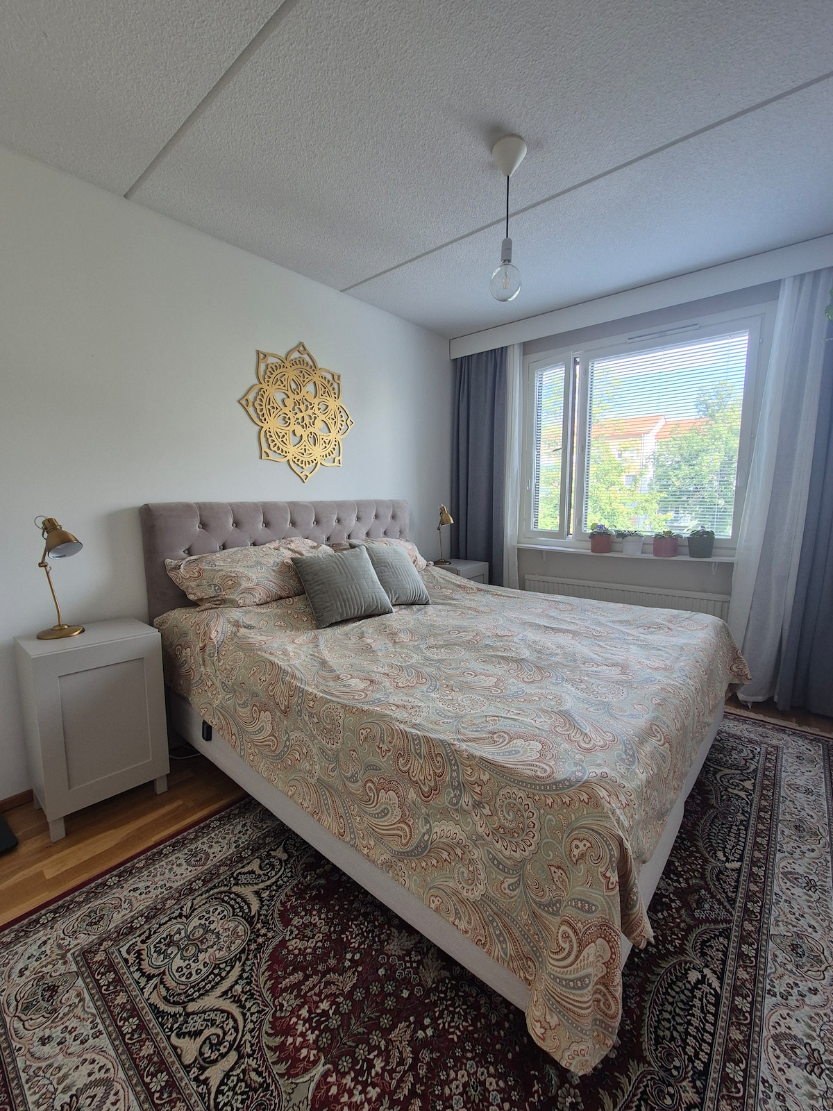 Ննջասենյակ ՝ երկտեղանի հարմարավետ մահճակալով, հյուրասենյակ ՝ լայն բազմոցով, խորդանոց ՝ 2 ազատ ներքնակներով և օրորոց ՝ ամենափոքրերի համար ։ Սառեցման օդորակման շնորհիվ ՝ բնակարանը կարող է հարմարավետորեն զով լինել նաև ամռան շոգին ։ Նույն շենքում ՝ հիանալի ռեստորան և մոտակայքում գտնվող շատ լավ սննդի կետեր ։ Թատրոններ, ֆիլմեր, համերգասրահներ, լողավազանի սրահ, բոուլինգի ծառուղի ՝ Մեցո գրադարանի, Särkänniemi - ի և Nokia Arena - ի հարևանությամբ ՝ ոտքով քայլելու հեռավորության վրա ։ Գնացքի և ավտոբուսի կայարանների համար ոտքով կամ տրամվայով անցեք 15 րոպե ։
