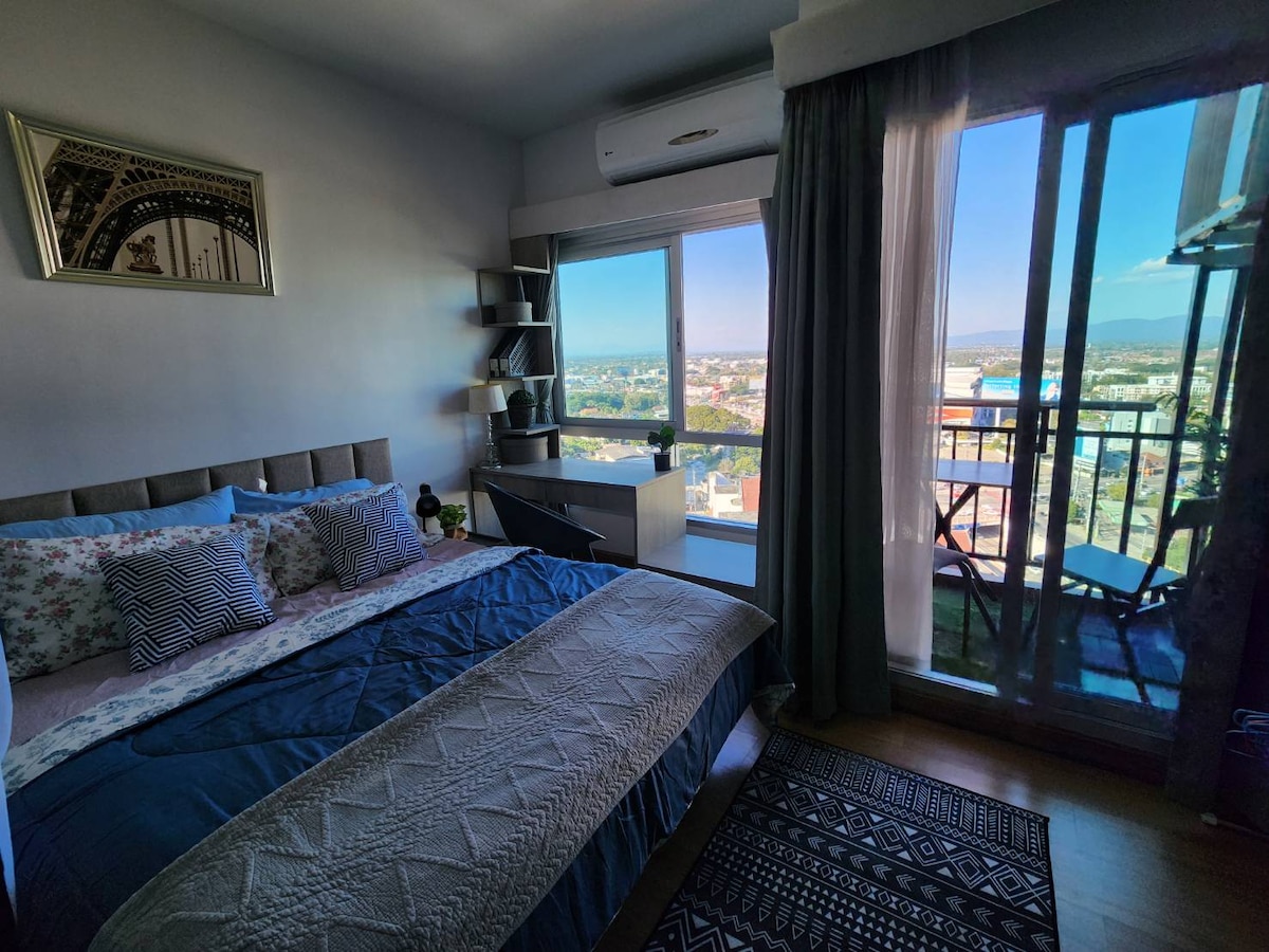 清迈市区长康路48平高档公寓,自己购买,房东自己用心经营,价格任性,性价比最高!介绍一下房间情况:公寓距离机场10分钟车程,距离夜市步行5分钟,距离古城步行10分钟,在香格里拉酒店隔壁,楼下就有7-11,川味金牌火锅,出行非常方便!24小时保安,无边际泳池,免费健身房,干湿桑拿,都在公寓的16楼!公寓的落地玻璃可以直接看到香格里拉酒店的花园和泳池。配合泰国最好乳胶品牌,床垫和两种高度枕头,让您在游玩之后睡个草鸡香甜的好觉^_^您可以和您的基友,爱人,坐在落地玻璃窗前喝喝红酒,畅谈人生,感受清迈香甜的空气,适宜的温度!房东自主经营,用超高的卫生标准要求自己,服务于您,希望能给您的清迈之旅提供一个温馨的休息环境!不定期会有特价房哦!!!