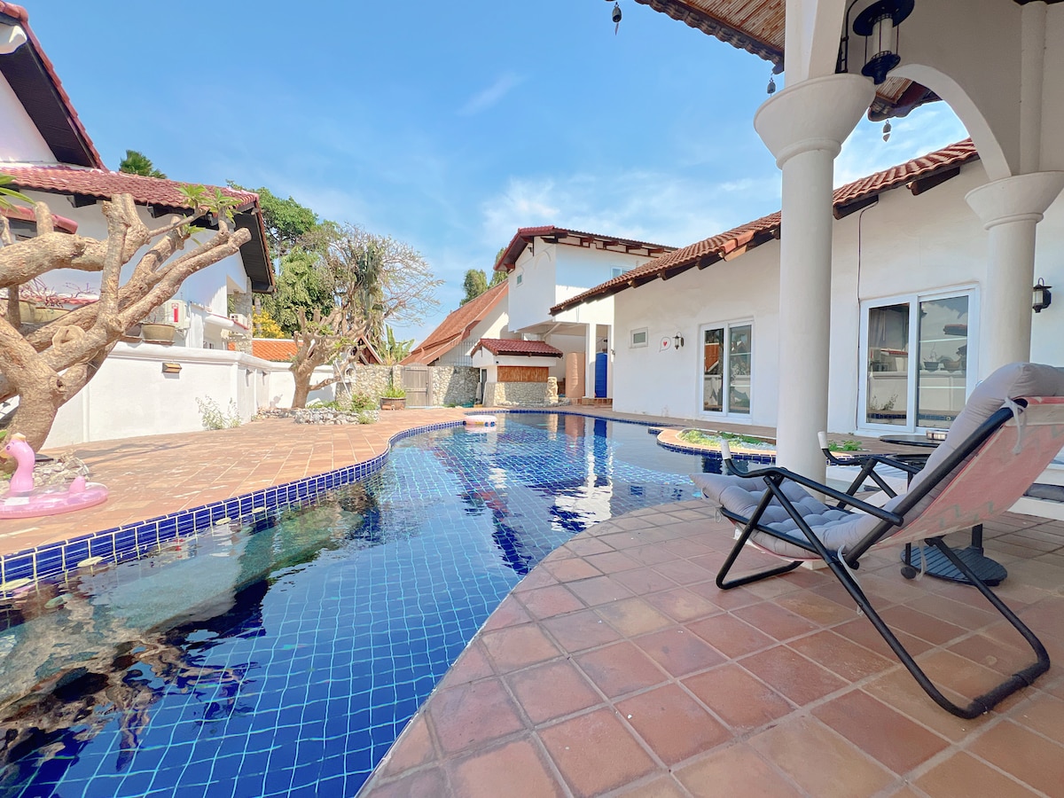Հանգստացեք շքեղություն Պատտայայի սրտում գտնվող մասնավոր լողավազանի վիլլայում ։ - Մեր սեփականության տարածքում կա ընդամենը 5 մասնավոր վիլլա, որոնցից յուրաքանչյուրը հասանելի է վարձակալության համար ՝ ապահովելով առավելագույն գաղտնիություն և անվտանգություն ։ - Կատարյալ է ընտանեկան արձակուրդների, ընկերական հավաքույթների, պիկնիկների կամ տոնակատարությունների համար ։ Յուրաքանչյուր վիլլա ունի խորովածի տարածք և լիովին կահավորված խոհանոց ՝ ձեր հարմարության համար: - Մենք նաև առաջարկում ենք լիակատար աջակցություն և օգնություն, որոնք կօգնեն կատարել ձեր ցանկություններն ու հատուկ խնդրանքները ձեր այցի ընթացքում ։