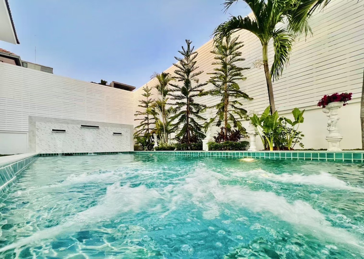 Japanese 4 Bedroom Pool Villa accomodating up to 10 Guests. At the side of the property is a private 4 × 10 meter swimming pool, surrounded by clean stone paving and landscaped gravel areas inspired by traditional Japanese gardens. The villa is ideally located just a 3-minute walk from The Sanctuary of Truth, one of Pattaya’s most famous cultural landmarks. The beach is only 800 meters away, making it easy to enjoy Sunbath.7-11, massage shops,restaurants are all within walking distance.