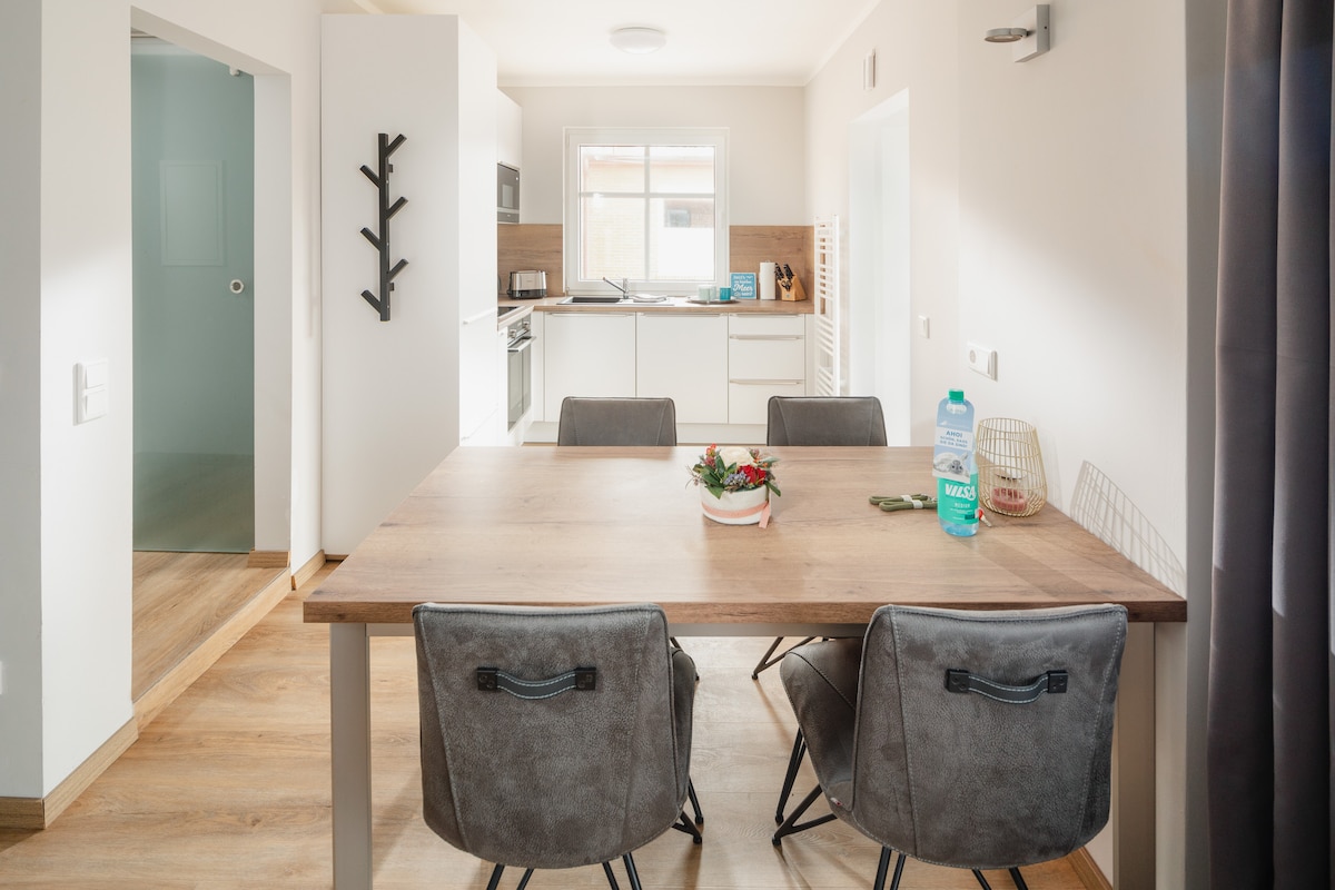 56 qm Wohnung im Erdgeschoss mit 1 Schlafzimmer, Schlafcouch im Wohnbereich, 1 Bad, große Terrasse Die Wohnung Palsteg befindet sich im Erdgeschoss. Genießen Sie Ihr Frühstück auf der schönen Außenterrasse mit Zugang zum Garten und der charmanten Außensauna. Unseren Gästen steht ein Schlafzimmer mit Doppelbett und eine hochwertige Schlafcouch im Wohn-/Essbereich für zwei weitere Personen zur Verfügung. Ein modernes großzügiges Bad mit Dusche ergänzen die Wohnung für den perfekten Urlaub!