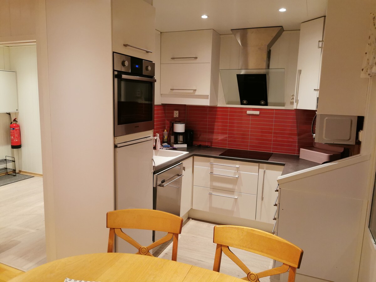 Vestbygdvegen 31, 8410 Lødingen. E10 - ից 100 մ հեռավորության վրա Փոքր և ժամանակակից հյուրատուն ՝ մուտք, բազմոցով հյուրասենյակ ։ Խոհանոց ամանալվաց մեքենայով, միկրոալիքային վառարանով, կերամիկական գազօջախով, ջեռոցով, 2 սառնարանով, սառցարանով +++։ Լոգասենյակ ցնցուղով: Հեռուստացույց: Wi - Fi մանրաթելային ինտերնետ ։ Լվացքասենյակ ։ Լվացքի մեքենա և չորանոց, որոնք հասանելի են հարևան տանը ։ Լավագույնը 3 մեծահասակի համար, բայց լավ մահճակալներ 4. 2 - րդ հարկում գտնվող 2 ննջասենյակ ՝ 2+2 մահճակալով: Եթե քայլելու աստիճանների հետ կապված խնդիր առաջանա, հնարավոր է, որ 1 հյուրը կարողանա քնել առաջին հարկում գտնվող մահճակալում ։ Հնարավոր է գնել մեքենայի լիցքավորում