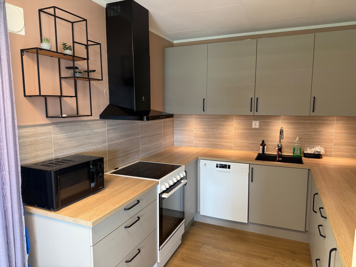 A cozy home for the family, in a beautiful and quiet place with great views on the fjord. Perfect for relaxation, northern light viewing, fishing, skiing, wonderful hikes in the surrounding areas. The house is close to the E6 road. It has a kitchen, a living room, a large terrace, shower/ toilet and 3 bedroom rooms that can accommodate up to 6 people. Housing was renovated in 2025, furniture is modern, comfortable.