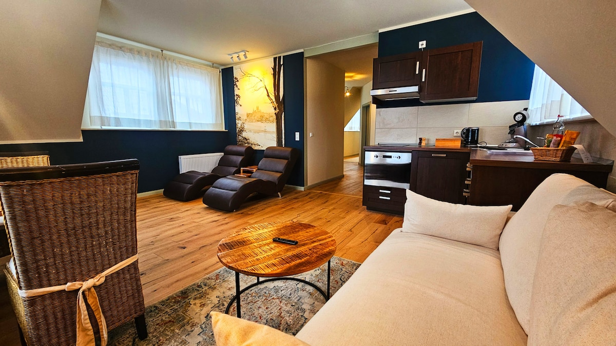 Բարի գալուստ «Rooftop Spa Meissen»՝ բացառիկ պենտհաուս, որը նախատեսված է առանձնություն, դիզայն և առողջ ապրելակերպ փնտրող խորաթափանց հյուրերի համար։ Շատ լավ վերանորոգված, ձեզ սպասում է յուրահատուկ բնակարանային և սպա փորձառություն՝ տպավորիչ տեսարաններով։ 🌟 Առանձնահատկություններ ՝ մեկ հայացքով • 🛁 Մասնավոր ջակուզի • 🧖 Սաունան • 🌇 Դեպի Էլբան և տաճարը բացվող տեսարան • 🔥 Խորովածի տարածք • 🏙️ Շքեղ պենտհաուս ՆՈՐՈՒԹՅՈՒՆ • ✨ Ժամանակակից դիզայն • 🔒 Առանձնություն և հանգիստ • 💎 Առողջ ապրելակերպի օազիս • ♿ Անվասայլակով հասանելի • 🛗 վերելակ